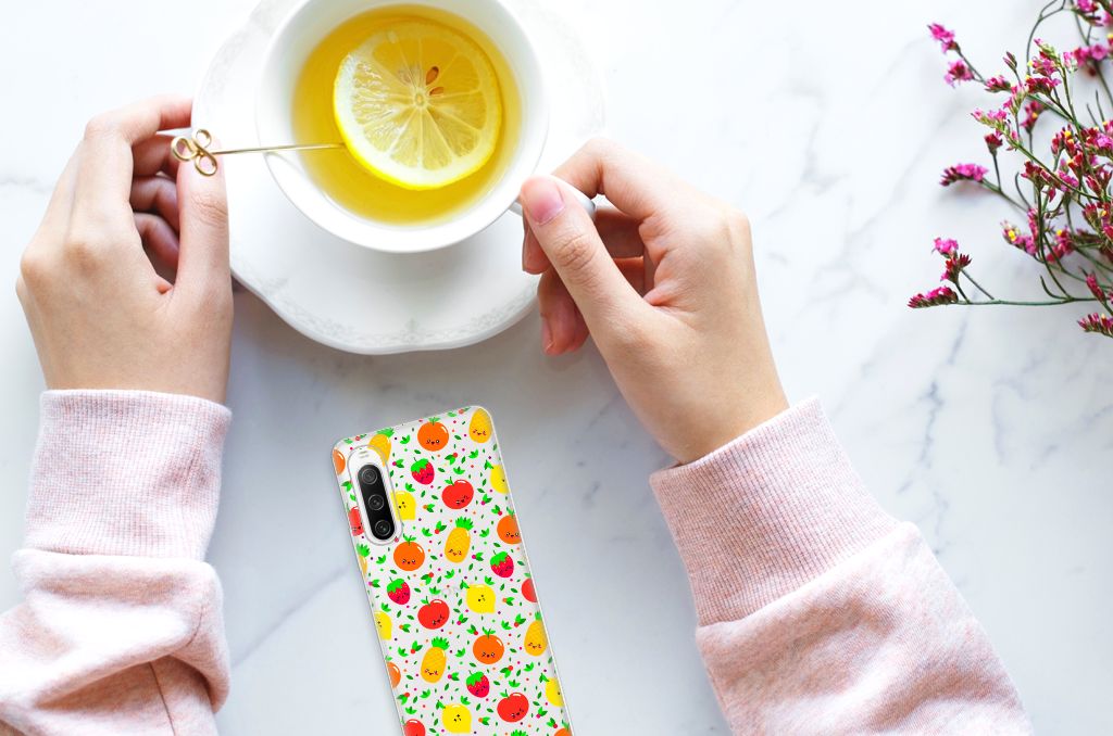 Een fris, fruitig en vrolijk hoesje, deze case met afbeeldingen van aardbeien, ananassen, appels, sinaasappels en citroenen. Minstens twee stuks fruit per dag wordt aanbevolen als dagelijkse hoeveelheid voor de mens. Dit verkleint de kans op allerlei ziekten. Dus met het aantal stukken fruit op de Sony Xperia 10 IV Siliconen Case zou je wel een maandje zoet moeten zijn. Met het hoesje zelf kun je je hele leven doen, dit is namelijk niet stuk te krijgen. Dit komt door het sterke en flexibele materiaal waarvan het gemaakt is. De vrolijk stemmende case het desing Fruits maakt jouw telefoon dus zeer duurzaam. Zorg ervoor dat jouw smartphone gezond blijft en kies voor dit hoesje met frivool fruit. Een tpu case met fruit wordt alleen aan de bovenkant bedrukt en is zeer flexibel. De randen van het hoesje blijven transparant en worden niet bedrukt met het fruit.