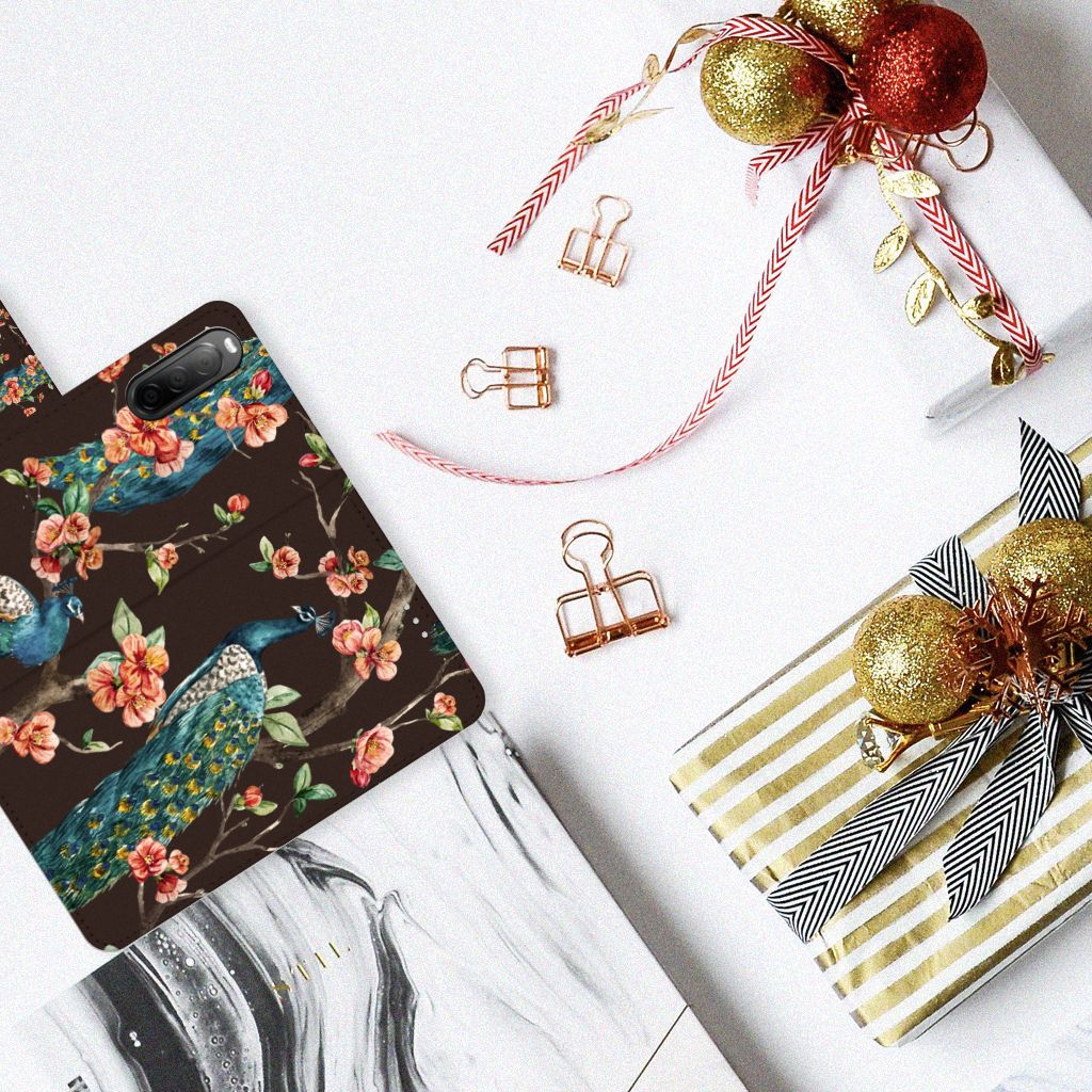 Sony Xperia 10 IV Telefoonhoesje sluit met magnetisch lipje Pauw | Bloemen