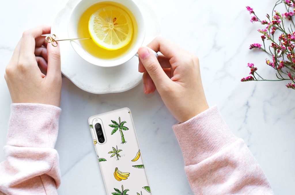 Heb jij al zin om op vakantie te gaan? Dat krijg je hoe dan ook als je één blik werpt op dit vrolijke hoesje voor je Sony Xperia 10 IV met Banana Tree design. Het fleurige tafereel van bananenbomen, bananenbladeren en bananen doet je gedachten afdwalen naar paradijselijke bountystranden met azuurblauwe zee en helderwitte zandpartijen. Kortom: dit hoesje is goed voor je humeur. Naast het luchtige design zijn daar nog meer redenen voor, want dankzij de stevige materialen weet je zeker dat dit TPU Case je telefoon altijd optimaal beschermt Dit hoesje wordt alleen aan de bovenkant bedrukt en is zeer flexibel. De randen van het hoesje blijven transparant. Met dit hoesje breng je jezelf in zomerse sferen en gun je jezelf een krasvrije telefoon.