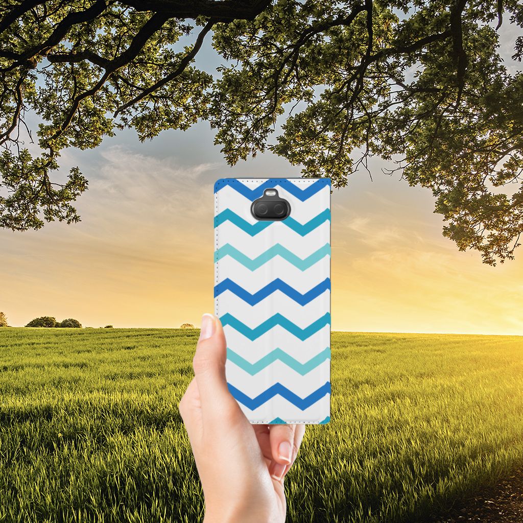 Dit zigzag blauwe design hoesje is speciaal ontworpen voor jou. We hebben bewust verschillende stijlen blauw gebruikt, zodat er voldoende sprake is van variatie. Dit blauwwitte Hoesje met Magneet ziet er super strak uit. Dat kan ook niet anders, als je weet dat onze zeer talentvolle designer er hoogstpersoonlijk voor verantwoordelijk is. Hij schudt wekelijks nieuwe designs uit zijn mouw en dit zigzag blauwe hoesje is een van zijn fraaiste creaties. Een heel dik design hoesje, al zeggen we het zelf. Valt dit blauwwitte design hoesje goed bij jou? Bestel het dan vandaag nog en je hebt het morgen in huis. Het design staat op een stand case. Deze case beschermt jouw Sony Xperia 10 Plus aan alle kanten en beschikt over een 1 opbergvakje en een speciale standaard. Het hoesje wordt afgesloten met een magneet aan de binnenzijde. De houder aan de binnenzijde is van TPU. Alle zijden van de stand case worden bedrukt.