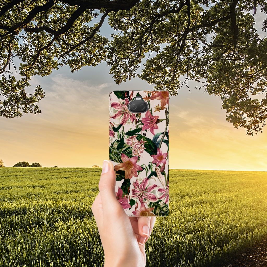 Dit Flowers design is een zegen voor de mens en zijn smartphone. De paarswitte bloemen en groene bladeren op deze Sony Xperia 10 Plus Smart Cover geven jouw smartphone een zeer sierlijke uitstraling. Je krijgt er meteen een goed gevoel bij als je aan het appen, mailen of aan het bellen bent. Valt dan je telefoon op de grond, dan zal er dankzij de stand case met paarswitte bloemen en groene bladeren geen schade ontstaan. Onze stand cases met paarswitte bloemen en groene bladeren bieden de allerbeste bescherming en zijn heel praktisch, wat blijkt uit onder meer het vakje aan de binnenkant en de handige standaard waarmee je de smartphone rechtop op tafel neer kunt zetten. De paarswitte bloemen en groene bladeren komen op alle zijden van de case te staan. Op deze stand case van leer en TPU (houder aan de binnenkant) kun je in no time zelf foto’s van jouw favoriete bloemen zetten.