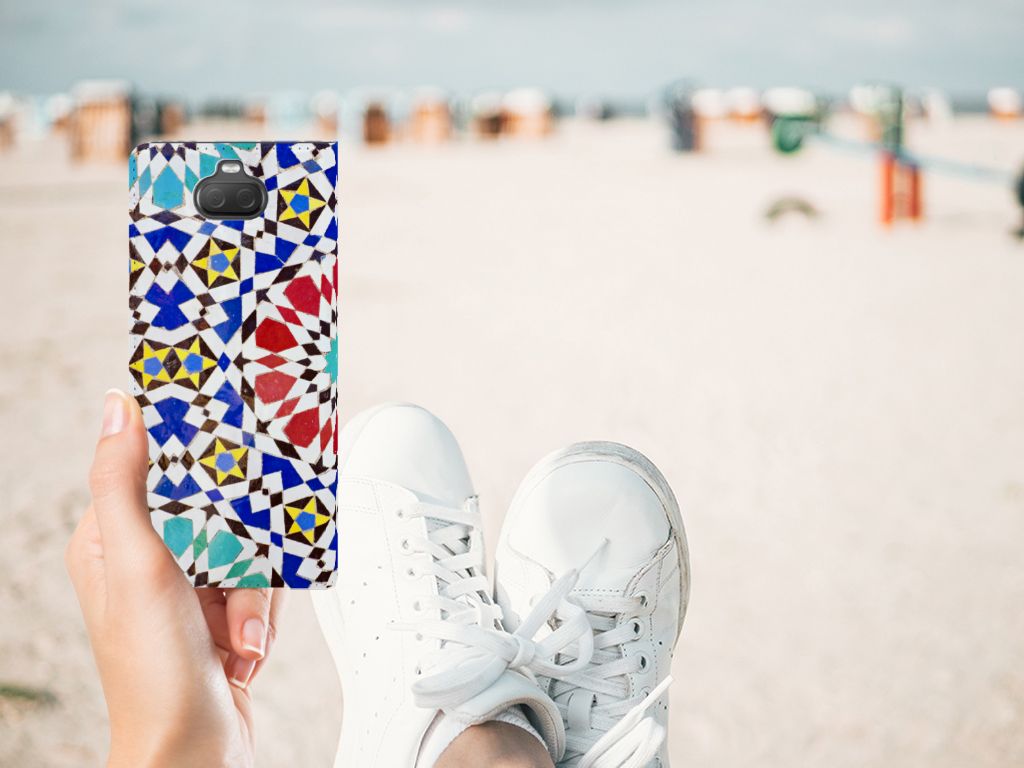 Aan design hoesjes met kunstvormen geen gebrek in onze uitgebreide collectie. Wat dacht je van dit design hoesje met Mozaïek . Dit is een kunstvorm waarbij een grote afbeelding wordt gemaakt uit een groot aantal kleine gekleurde steentjes (tesserae), die in een vloer of wand worden gemetseld. Deze gekleurde steentjes zie je terug op deze stand case met design van mozaïek. Een stand case is een van de veiligste cases die er bestaan. Een Sony Xperia 10 Standcase met print zorgt voor een volledige bescherming van je smartphone en wordt aan alle zijden bedrukt met mozaïek. Verder is de houder aan de binnenzijde van TPU. De Grieken en Romeinen beheersten de kunst al. Op diverse plaatsen in Europa zijn mozaïeken teruggevonden die tot op de dag van vandaag goed bewaard zijn gebleven. Met een hoesje met mozaïek blijft jouw telefoon in tact. Je pasje en kun je in het vakje aan de binnenzijde stoppen. De case heeft ook een standaard.