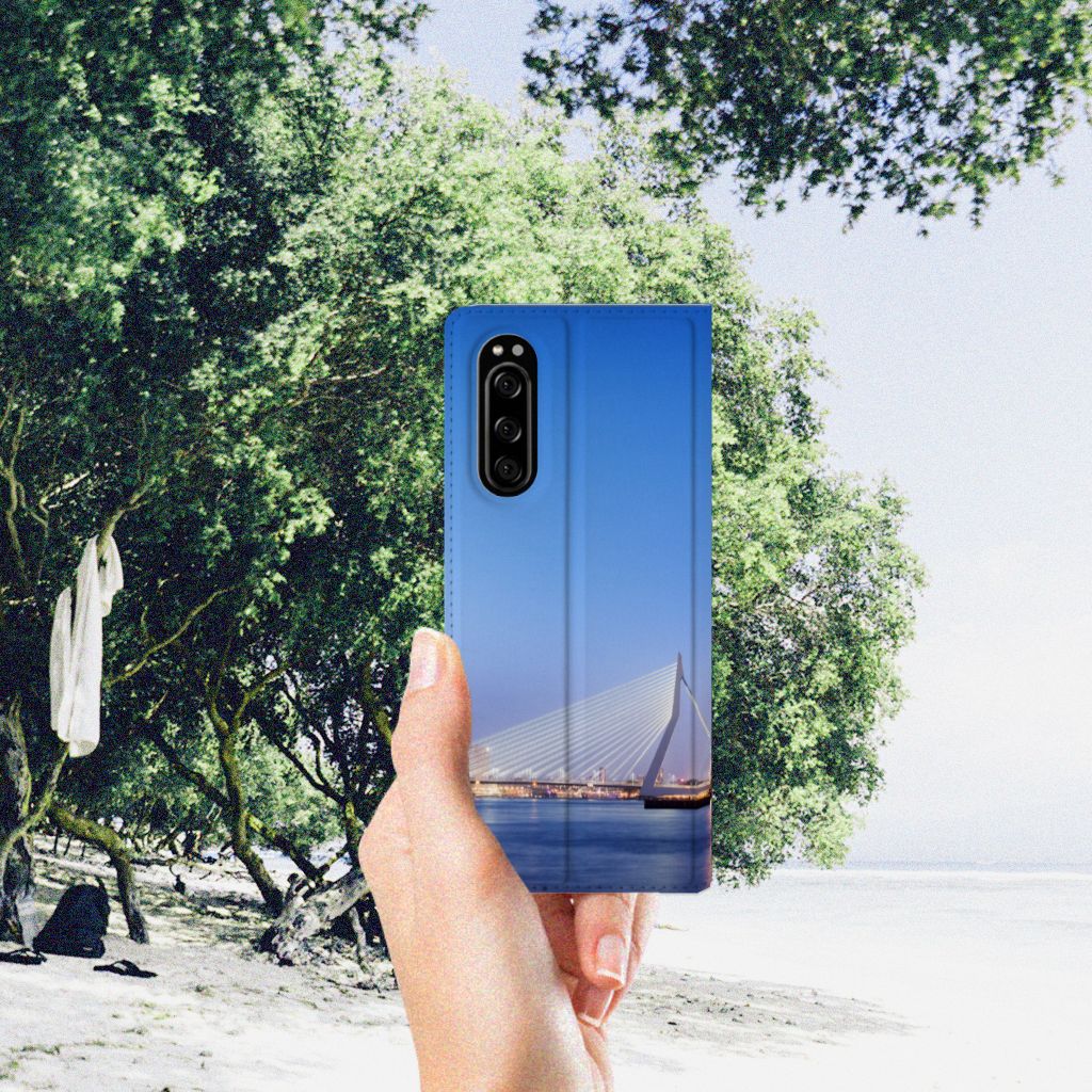 Een hoesje met de Rotterdamse skyline is niet alleen voor de plaatselijke inwoners een bijzonderheid. Ook jij zult glimmen van trots wanneer het gaat over jouw stand case met de Rotterdamse skyline. Sinds 1975 zijn hoogbouw en Rotterdam onlosmakelijk met elkaar verbonden. Dat zie je duidelijk terug als je dit smartphone hoesje koopt. Een Sony Xperia 5 Book Cover is zeer praktisch dankzij het opbergvakje aan de binnenzijde en de magnetische sluiting en beschermt jouw smartphone aan alle zijden. Dankzij het platte Hollandsche landschap zie je de Rotterdamse binnenstad vanuit verschillende posities liggen. Beloon jezelf en je telefoon met dit mooi Rotterdamse stand hoesje. De case heeft een houder van TPU, waar jouw telefoon precies in past.
