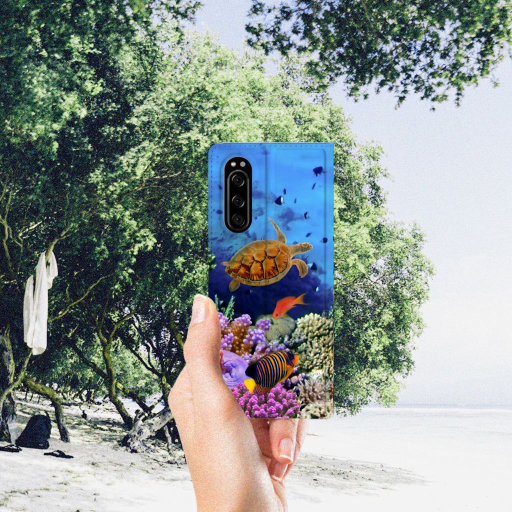 Dit kleurrijke hoesje met tropische Vissen is een ware eyecatcher. Als je aan het duiken bent en je treft een school aan met dit soort opvallende vissen, dan heb je een geweldige ervaring. Maar je hoeft er eigenlijk niet per se het water voor in te duiken. Want wij hebben een schitterende verzameling vissen op dit design hoesje gezet. Met onze zeer geavanceerde printer zetten we de afbeelding van vissen op alle zijden van de Sony Xperia 5 Hoesje maken. De case heeft aan de binnenkant een vakje waarin je jouw creditcard of ander pasje kwijt kunt. Ga je een dagje vissen, dan hoef je de portemonnee dus ook niet op zak te hebben. Verder is je telefoon natuurlijk maximaal beschermd met deze stand case met print van tropische vissen. De houder aan de binnenzijde van het design hoesje met vissen print is van TPU.