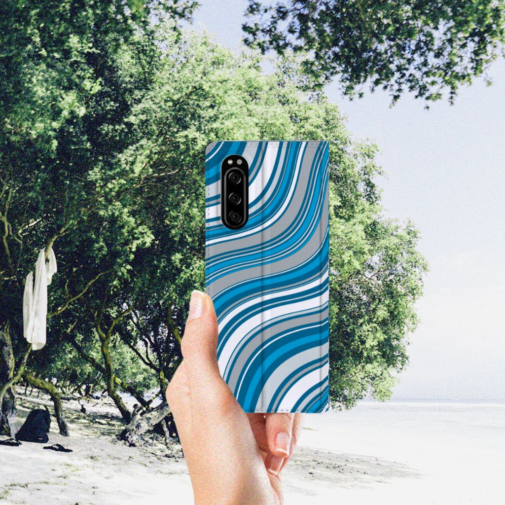 Zeer cool, dit hoesje met vooral blauwe kleuren, die in een golvende beweging jouw telefoon van een mooie uitstraling voorzien. Tijdens een zonnige vakantie aan zee is jouw smartphone perfect beschermd met dit telefoonhoesje. Het design Waves Blue van dit smartphone hoesje doet lichtjes denken aan een lolly, waarmee je een klein kind zeer blij maakt. Jouw Sony Xperia 5 zal er ook zeer vrolijk uitzien samen met dit design hoesje. De witte en grijze kleuren staan in mooi contrast met het blauw, waardoor de uitstraling van deze accessoire zeer mooi is. Ook voor andere kleuren kun je natuurlijk uitstekend terecht in ons assortiment. Het design staat op een Hoesje met Magneet. Deze case beschermt jouw telefoon aan alle kanten en beschikt over een 1 opbergvakje en een speciale standaard. Het hoesje wordt afgesloten met een magneet aan de binnenzijde. De houder aan de binnenzijde is van TPU.