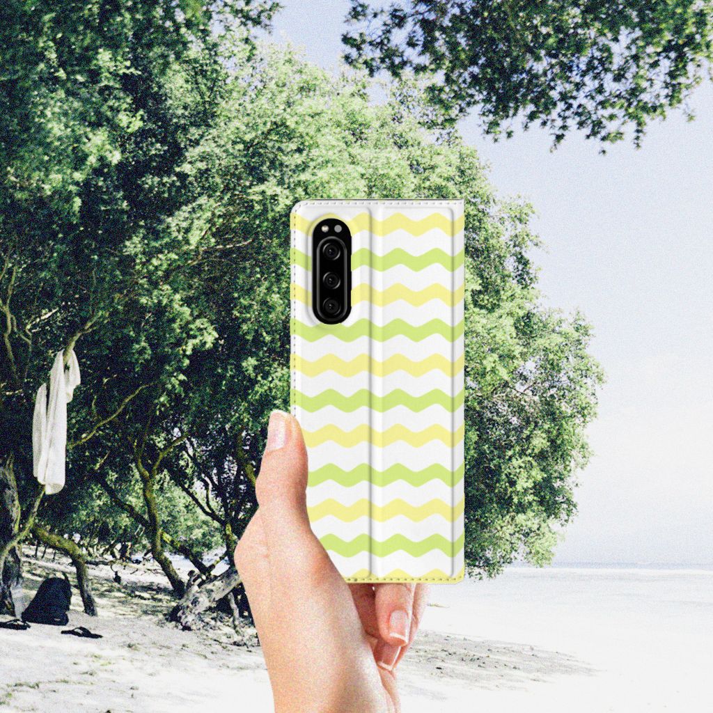 Dit Waves Yellow design hoesje met licht groene en gele golven is speciaal ontworpen voor jouw telefoon. We hebben een vleugje lichtgeel toegevoegd, zodat de case er een beetje spannender en leuker uitziet. Dit licht groene hoesje met licht groene golven ziet er oogstrelend uit. Het wordt in ons eigen magazijn bedrukt, in zeer goede kwaliteit inkt. Wij kunnen dus een zeer duurzaam hoesje met licht groene golven garanderen. Dit hele mooie Sony Xperia 5 Hoesje met Magneet heeft vele extra’s. Is dit licht groene design hoesje je op het lijf geschreven? Grijp dan nu je kans. Deze stand case met licht groene golven beschermt jouw telefoon aan alle kanten en beschikt over een 1 opbergvakje en een speciale standaard. Het licht groene hoesje wordt afgesloten met een magneet aan de binnenzijde. De houder aan de binnenzijde is van het flexibele TPU. Alle zijden van de stand case worden bedrukt.