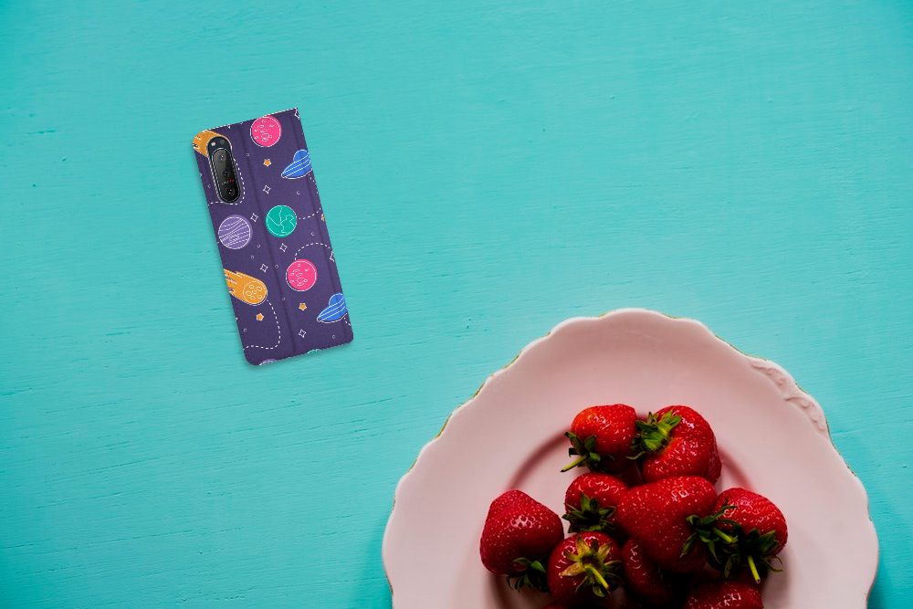 Ben je een beetje geïnteresseerd in buitenaards leven? Dan kan je wel eens enthousiast raken van deze Sony Xperia 5 II Hippe Standcase met Space print. Dus mensen die van science fiction houden zullen deze case ongetwijfeld mooi vinden. Er zijn verschillende planeten en vliegende schotels te ontdekken in dit design hoesje. Dit kunstwerkje is voor heel weinig geld te bestellen op onze website. Je krijgt er maximale bescherming van je smartphone voor terug. De stand case beschermt jouw telefoon aan alle kanten en beschikt over een 1 opbergvakje en een speciale standaard. Het hoesje wordt afgesloten met een magneet aan de binnenzijde. De houder aan de binnenzijde is van TPU. Je zult ontdekken dat dit hele stevige telefoonhoesje een heel goede bescherming biedt tegen alle vormen van schade. Met dit hoesje hoef je niet bang te zijn dat er krassen op je design komen of scheuren in je scherm.