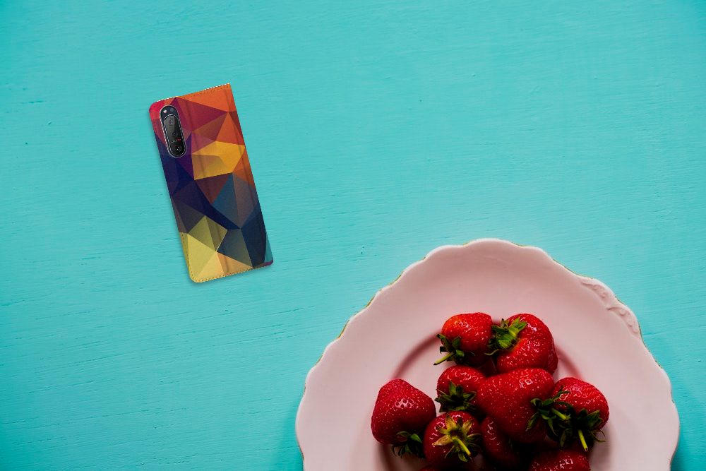 Veelkleurige driehoeken die samen eindeloze asymmetrische patronen lijken te vormen. Het is het abstracte schouwspel dat op dit fraaie hoesje voor je Sony Xperia 5 II direct de aandacht trekt noemen we voor het gemak trekt noemen we voor het gemak Polygon Color. De een ziet er een berglandschap in, de ander piramides. Wat zie jij erin? Zeker is in elk geval dat de aanblik van dit fascinerende ontwerp je niet snel gaat vervelen. Het kleurige spel van lijnen en vlakken blijft eindeloos boeien en geeft jouw Stand Case een hippe en kunstzinnige uitstraling. De kracht die het lijnenspel uitstraalt, komt ook terug in het hoesje zelf. De solide hoes van PU-leer beschikt ook over een 1 pashouder en een speciale standaard. Het hoesje wordt afgesloten met een magneet aan de binnenzijde. De houder aan de binnenzijde is van TPU. Alle zijden worden bedrukt.