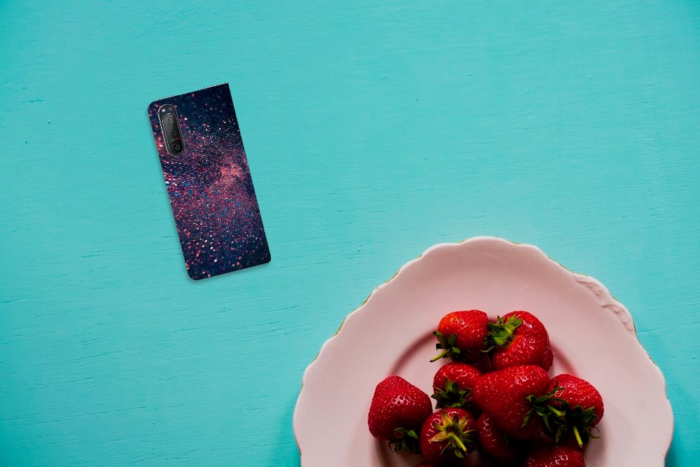 Je waant je in de zevende hemel met dit kunstzinnige, glitterachtige design hoesje met paarse en blauwe kleuren tegen een inktzwarte achtergrond. Het smartphone hoesje heeft ook een wat science fiction achtige allure. Met deze design Stars case zul je zeker opvallen. Als dit je bedoeling is, bestel dat snel dit waanzinnig mooie product voor je Sony Xperia 5 II. Het telefoonhoesje is van alle gemakken voorzien en combineert een hele fraaie uitstraling met maximaal comfort. Bovendien is het gemaakt van zeer stevig en flexibel materiaal. Het unieke design, door B2C Telecom ontworpen, staat op een Stand Case. Deze case beschermt jouw telefoon aan alle kanten en beschikt over een 1 opbergvakje en een speciale standaard. Het hoesje wordt afgesloten met een magneet aan de binnenzijde. De houder aan de binnenzijde is van TPU.