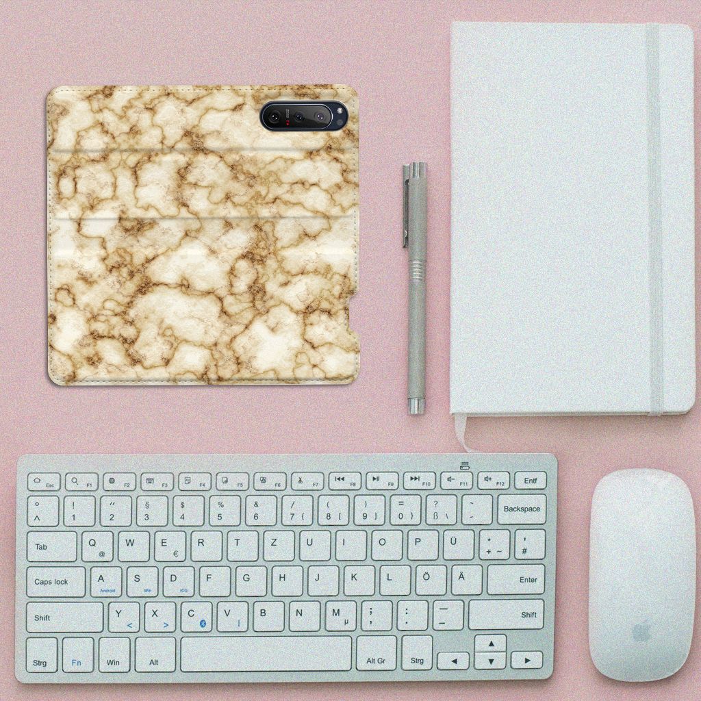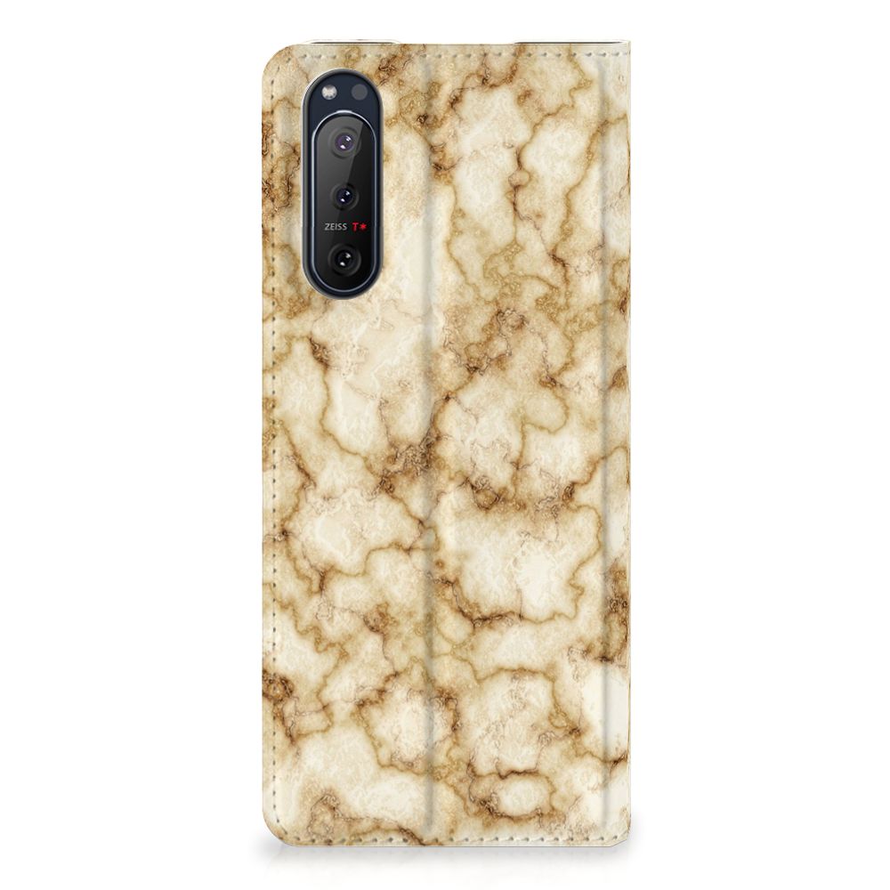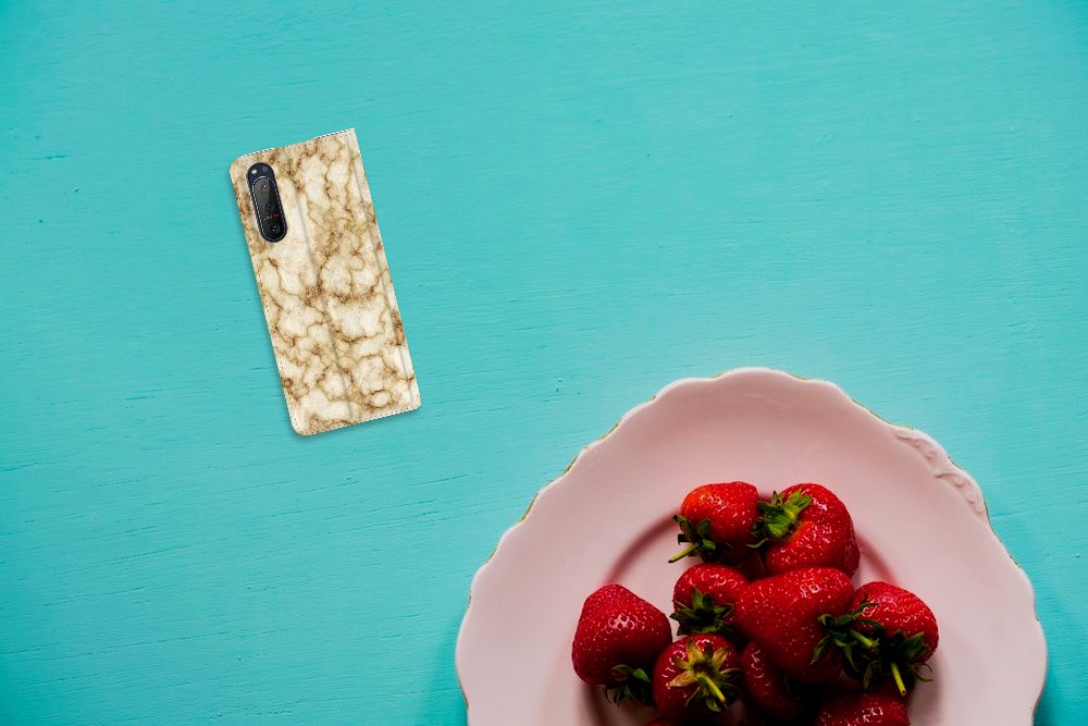 Deze Sony Xperia 5 II Standcase met Marmer Goud is het waard om een blokje voor om te rijden. Dit is overigens niet nodig. Als je het hoesje met goud marmer nu bestelt heb je het zeer snel in huis. Je kunt er bij wijze van spreken thuis op gaan zitten wachten. Je hebt diverse soorten marmer. We hebben enkele fraaie kleuren op onze hoesjes gezet, zoals in dit geval het gouden marmer. Het gouden marmer wordt bedrukt op alle zijden van de stand case, die beschikt over een vakje voor pasjes of briefgeld en een magnetische sluiting aan de binnenzijde. Verder heeft de case met goud marmer een houder van TPU. De rijkheid aan kleuren en variaties in afwerking is een schitterende eigenschap van marmer. Dit stand hoesje met goud marmer heeft ook veel schitterende eigenschappen en is de ideale bescherming voor jouw smartphone.