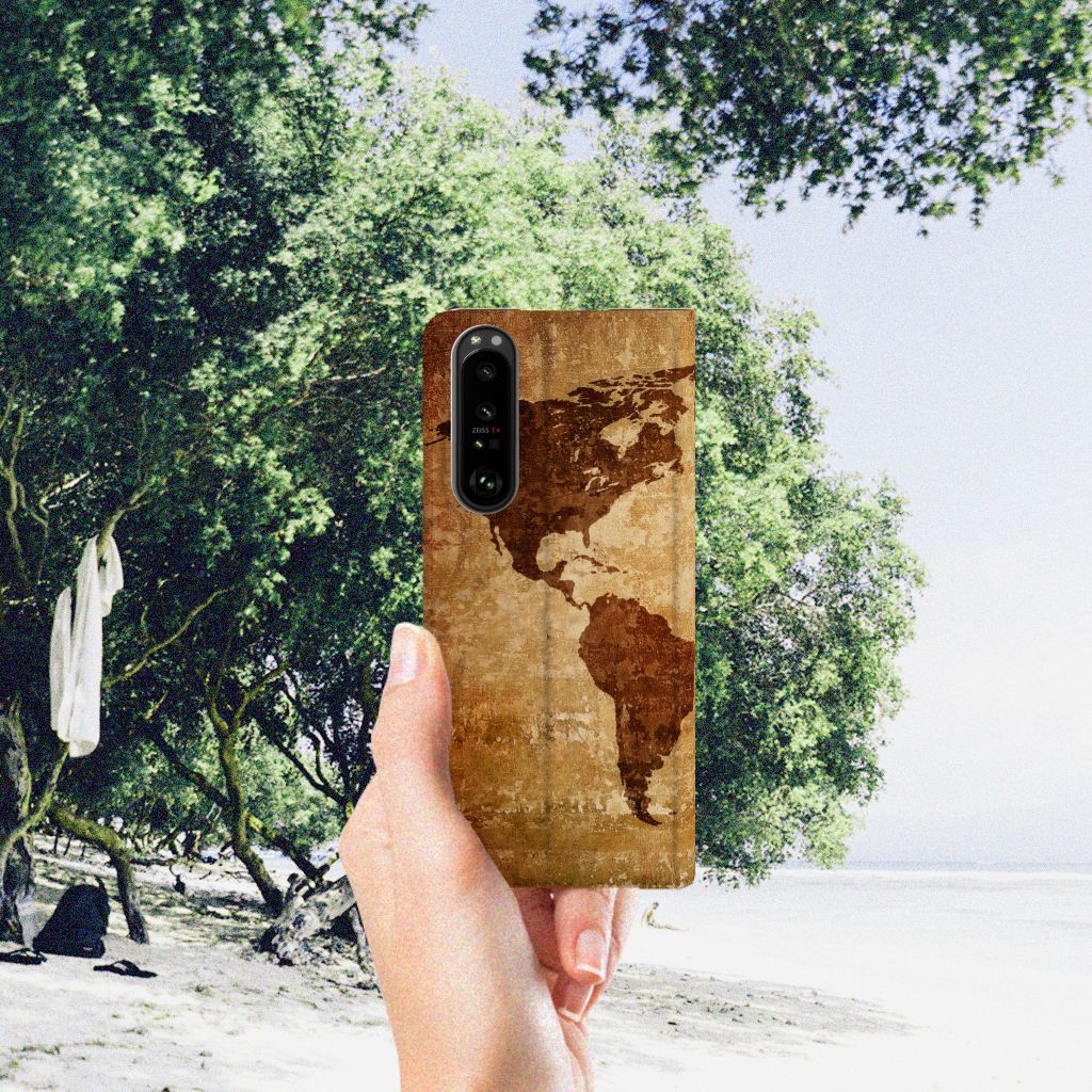 Als je een hoesje koopt met een wereldkaart, kun jij op veilige wijze met je smartphone rond de wereld reizen. Ga je zonder een boekhoesje met wereldkaart het buitenland verkennen, dan loop je veel te groot risico dat je stukken krijgt aan je smartphone. Met als gevolg dat je de belangrijke gebeurtenissen op je reis wellicht niet meer vast kunt leggen om door te sturen aan je vrienden. In het slechtste geval wordt jouw toestel zonder een smartphone hoesje met wereldkaart onbruikbaar. Wij kunnen de wereldkaart bedrukken op een stand case. Een Sony Xperia 5 III Book Cover beschermt jouw telefoon aan alle kanten en beschikt over een 1 opbergvakje en een speciale standaard. Het hoesje wordt afgesloten met een magneet aan de binnenzijde. De houder aan de binnenzijde is van TPU. Dit stand hoesje met wereldkaart is voor een zeer laag bedrag te bestellen.