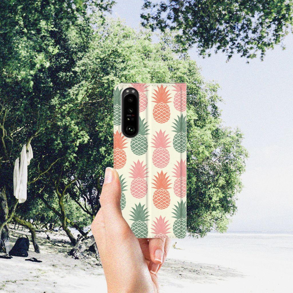 Ananas is een woord uit het Tupi, de taal van de Tupi-indianen, en betekent uitmuntende vrucht. Dit fruit van zeer hoge kwaliteit staat op onze superieure boekhoesjes, stand cases, hard cases en TPU cases. Jij blijft er gezond uitzien als je zo nu en dan een hap neemt van een Ananas , jouw smartphone blijft tip top in orde als je er een leuk telefoonhoesje omheen doet. Een ananas heeft stevig, veerkrachtig vruchtvlees. Een beetje te vergelijken met het TPU in onze hoesjes. TPU is elastisch materiaal, dat zeer buigzaam is. Vandaar dat het zeer schokbestendig is. Het ananas design staat op een stand case. Deze Sony Xperia 5 III Flip Style Cover beschermt jouw telefoon aan alle kanten en beschikt over een 1 opbergvakje en een speciale standaard. Het hoesje wordt afgesloten met een magneet aan de binnenzijde. De houder aan de binnenzijde is van TPU.