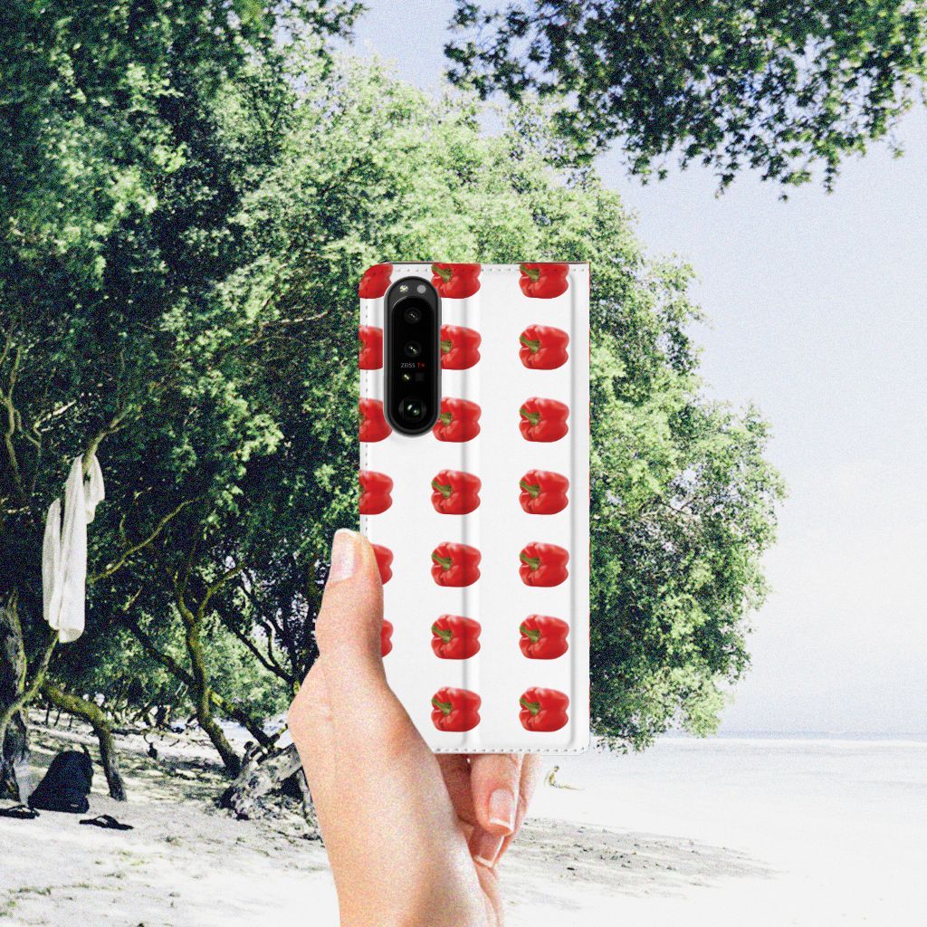 Er zit pit in jouw Sony Xperia 5 III Flip Style Cover dankzij dit design met rode paprika’s. Paprika’s zijn er in allerlei kleuren en vormen en ze hebben gemeen dat ze heel erg gezond zijn. De rode paprika’s op deze case staan op een grijs met witte geblokte achtergrond en vormen een opvallende verschijning. Heb jij ooit iemand in je nabije omgeving rond zien lopen met een design hoesje met rode paprika’s? Waarschijnlijk niet. Dit stand hoesje met rode paprika’s beschermt jouw telefoon aan alle zijden en beschikt over een opbergvakje voor een pasje of briefgeld. De case sluit perfect af met de magneet aan de binnenzijde. Zeker weten dat je met dit hoesje met rode paprika’s een smartphone accessoire te pakken hebt waarmee je jezelf in de schijnwerpers zet. De houder aan de binnenzijde van de stand case met rode paprika’s is van TPU. Als je andere kleuren paprika’s op je hoesje wilt, raden we je aan ons assortiment design hoesjes te bekijken of zelf een hoesje te ontwerpen.