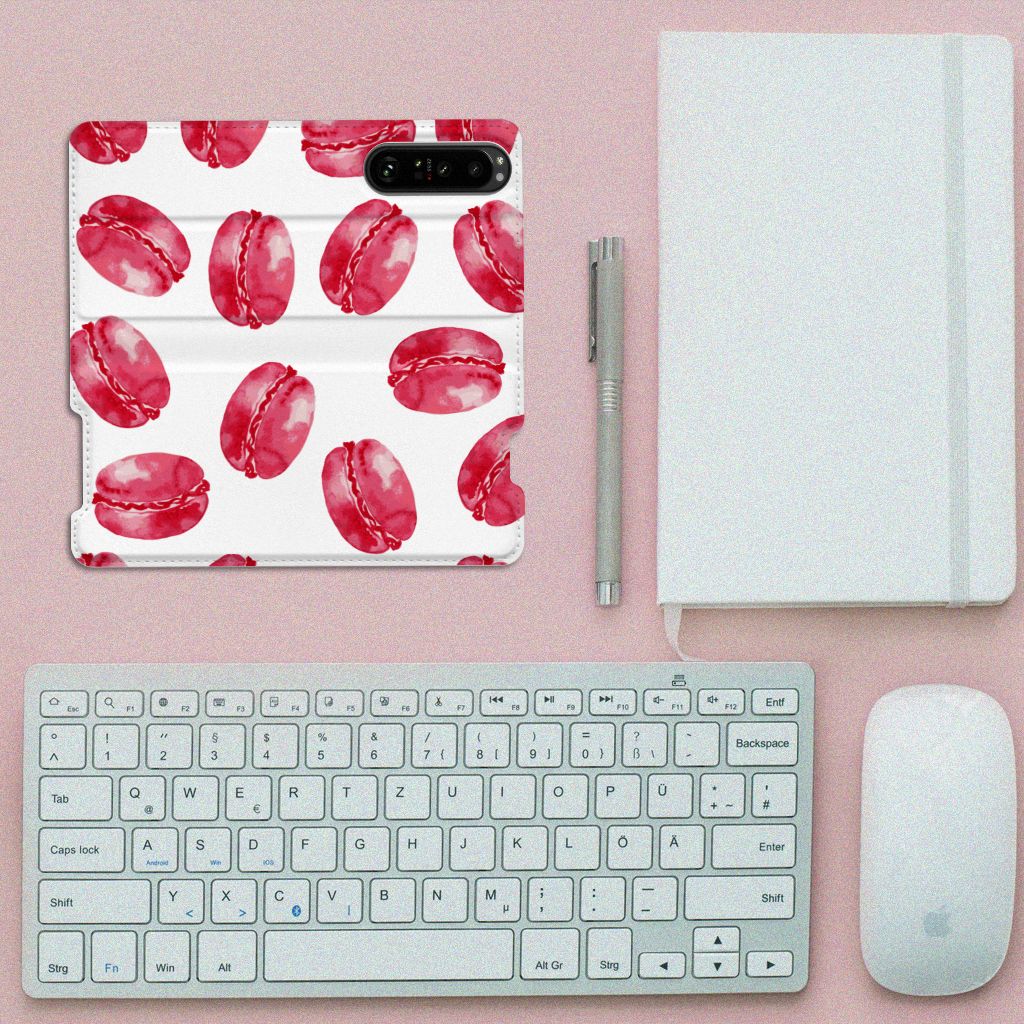 Dit stand hoesje met Pink Macarons is een zeer opvallende bescherming voor jouw smartphone. Macarons zijn Franse koekjes: kleine, rond en luchtig. Ze worden in veel verschillende smaken gemaakt, herkenbaar aan de verschillende kleuren zoals chocolade (donkerbruin), mokka (middenbruin), kersen (rood), pistache (groen), aardbei (roze), framboos (karmijn). Deze kleuren kun je net allemaal zien op dit fraaie design hoesje met roze macarons. Heb je altijd al een Sony Xperia 5 III Flip Style Cover willen hebben met roze macarons? Grijp dan nu je kans. Deze case heeft zeer veel goede eigenschappen, zoals 1 opbergvakje en een magnetische sluiting aan de binnenkant. Dit design hoesje met roze macarons wordt aan alle zijden bedrukt. De houder aan de binnenkant van het hoesje is van TPU. De case heeft ook een handige standaard.
