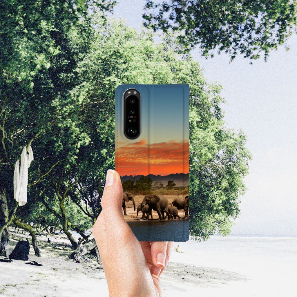 Dit hoesje is zo sterk als een olifant. Dat is goed nieuws, want jouw telefoon heeft een zeer goede bescherming nodig. Dat krijg je met dit design hoesje met print van Olifanten. De Afrikaanse olifant, het allergrootste landdier ter wereld, heeft waarschijnlijk het meest te lijden gehad van stroperij om het ivoor. Deze dieren verdienen dus een goede bescherming, net als jouw smartphone. Met een Sony Xperia 5 III Hoesje maken met olifant erop krijg je dit zeker voor elkaar. De stand case beschermt alle zijden van je telefoon en heeft aan de binnenzijde een vakje waarin je een pasje kunt opbergen. De sterke olifant komt zeer goed tot zijn recht op deze case, die aan de binnenkant een houder heeft van tpu. Ook de magneet aan de binnenkant is zeer handig. Alle zijden van de case worden bedrukt met olifanten.
