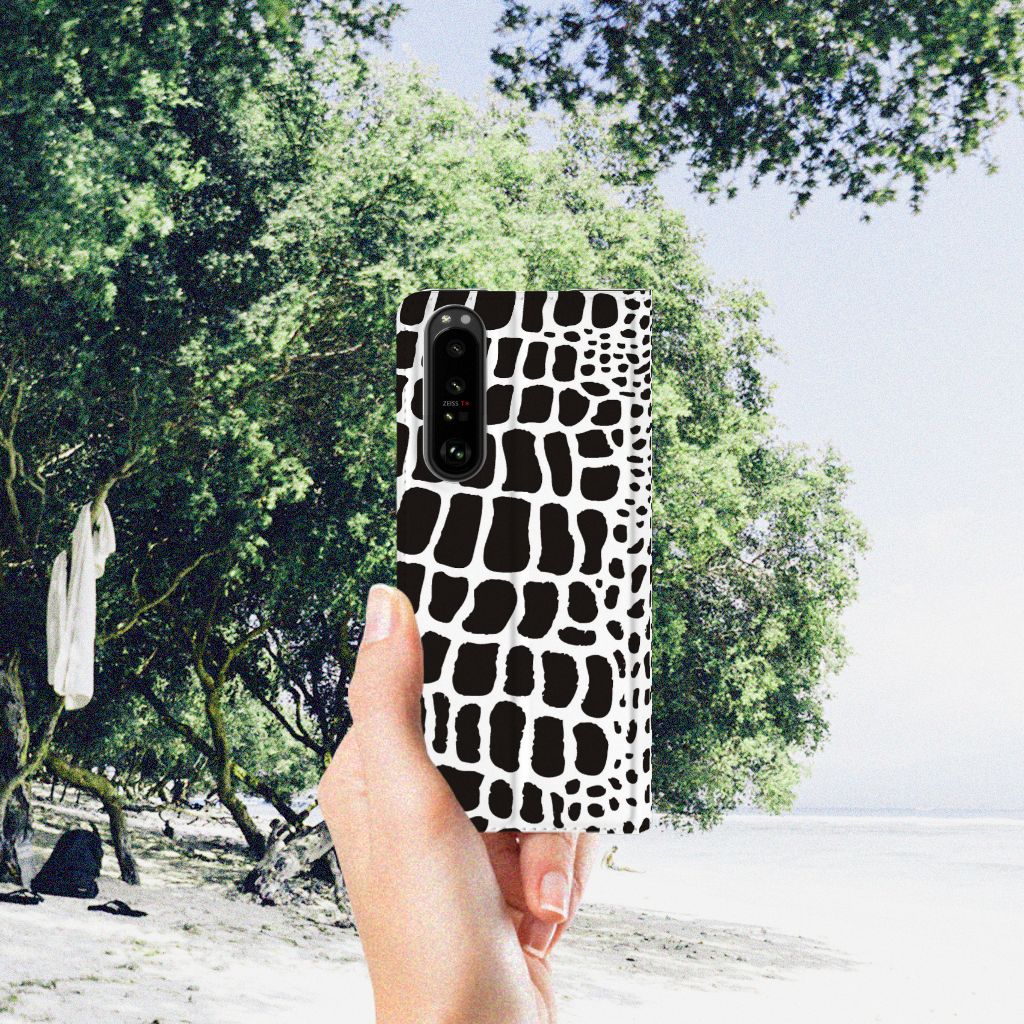 Deze stand case met zwarte en witte Slangenprint kunnen wij zeer exclusief noemen. Zeker als je er nog een bijzondere tekst van jezelf aan toevoegt, zoals je eigen naam in een sierletter. Jouw stand case krijgt dan een persoonlijke uitstraling, net nog een beetje specialer dan dit hoesje met zwarte en witte slangenprint. Wat niets afdoet van de exclusiviteit van deze stand case met zwarte en witte slangenprint. Ben jij toe aan een stoer en opvallend Sony Xperia 5 III Hoesje maken? Pak dan dit design met print van slangenhuid als basis. Het stand hoesje met zwarte en witte slangenprint is van PU-leer (buitenzijde) en TPU (binnenzijde) en beschikt over een houder en een standaard. Verder is dit stand hoesje met slangenprint voorzien van een magnetische sluiting aan de binnenkant. Jij bent ervan verzekerd dat jouw smartphone tegen een stootje kan met dit stand hoesje met zwarte en witte slangenprint.