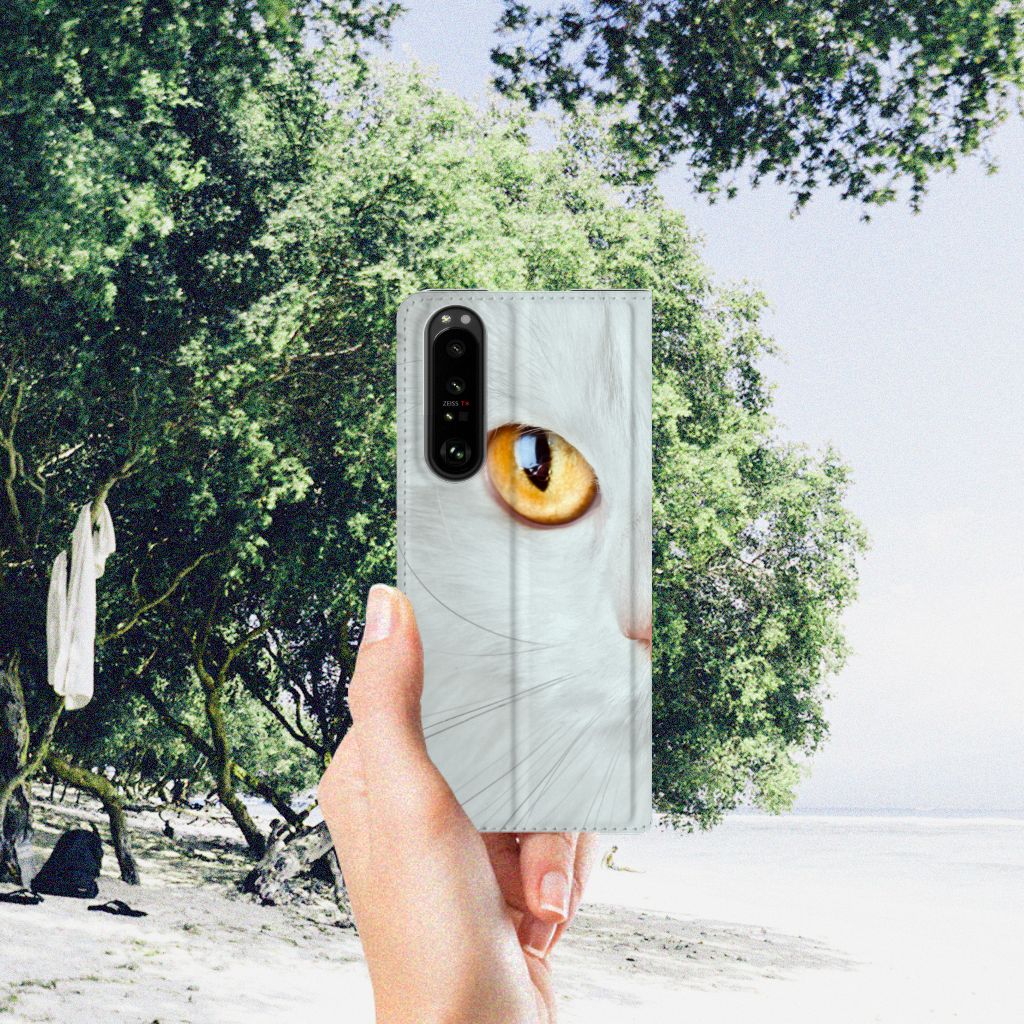 Witte katten zijn natuurlijk extra speciaal, vandaar we een exemplaar op een design hoesje hebben gezet. Een witte kat schijnt trouwens ook slechter te kunnen horen dan katten met een andere kleur. Deze witte kat staat op een zeer prominente wijze op een stand case. Deze stand case met witte kat ziet er geweldig uit en is voorzien van verschillende uitsparingen en een speciale standaard. Een Sony Xperia 5 III Hoesje maken met witte kat beschermt jouw smartphone perfect. Alle zijden van de case zijn bedrukt. Jouw smartphone wordt erg duurzaam met dit design hoesje. Het TPU aan de binnenzijde is zeer flexibel en het pu-leer oogt chique. Verder heeft de case een houder voor bijvoorbeeld je rijbewijs aan de binnenkant.