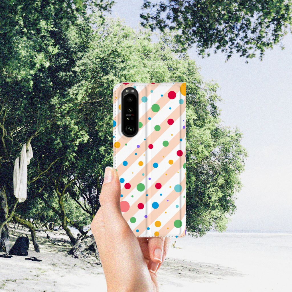 Een Sony Xperia 5 III Hoesje met Magneet met verschillende kleuren stippen is een schitterende bescherming van jouw smartphone. De stand case met het design Dots in alle kleuren van de regenboog komt voor jou als geroepen. Maak je geen gebruik van dit zeer mooie hoesje, dan kan het met jouw smartphone een beetje beroerd aflopen. Dit mooie stand hoesje met verschillende kleuren stippen zorgt voor een volledige bescherming van je smartphone en wordt aan alle zijden bedrukt. Dankzij de speciale standaard kun je rustig achteroverleunend filmpjes bekijken terwijl je je handen vrij hebt. Verder is de houder aan de binnenzijde van TPU. Jouw telefoon is dus zeer goed opgeborgen en kan geen kant op. Met een hoesje met stippen in verschillende kleuren op alle zijden blijft jouw telefoon volledig in tact. Heb je liever een stand case met stippen in andere opvallende kleuren? Ontwerp dan zelf case met je eigen foto’s en teksten!