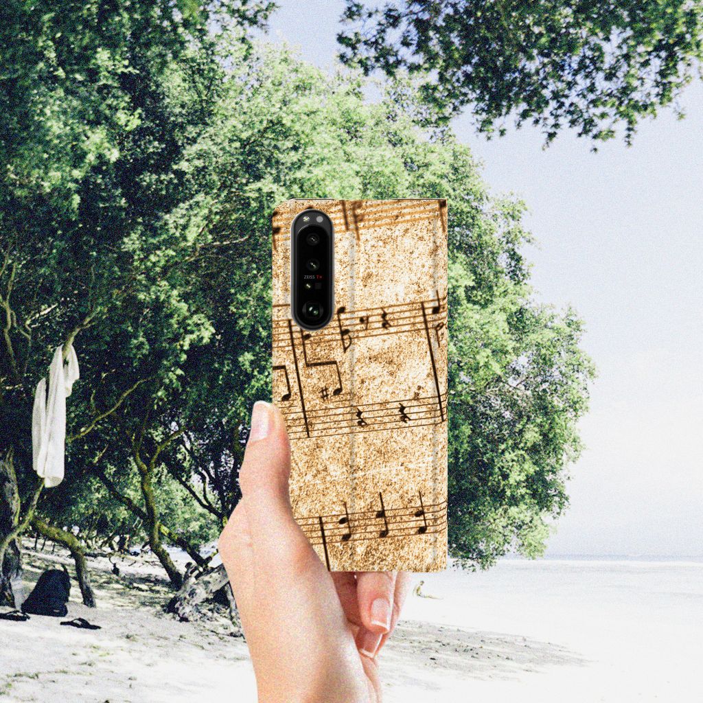 Ben je muzikant, dan is dit design hoesje met Bladmuziek wellicht echt iets voor jou. Met de intrede van nieuwe media wordt de rol van papieren bladmuziek teruggedrongen. Steeds vaker treft men 'bladmuziek' op een beeldschermapparaat, zoals een tablet-pc, e-reader of iPad aan. Gelukkig maar, want als er geen nieuwe media zouden zijn, hadden wij ook nooit onze Phone Case Designer kunnen ontwerpen. Met deze unieke ontwerpmodule kun je jouw favoriete band of artiest op je smartphone hoesje zetten, maar je kunt ook gaan voor dit prachtige design hoesje met print van bladmuziek. Het design staat op een Sony Xperia 5 III Stand Case. Deze case beschermt jouw telefoon aan alle kanten en beschikt over een 1 opbergvakje en een speciale standaard. Het hoesje wordt afgesloten met een magneet aan de binnenzijde. De houder aan de binnenzijde is van TPU. Alle zijden van de stand case worden bedrukt.