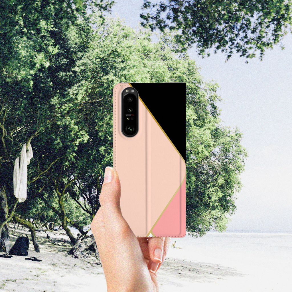 Sony Xperia 5 III Print Stand Case Zwart Roze Vormen