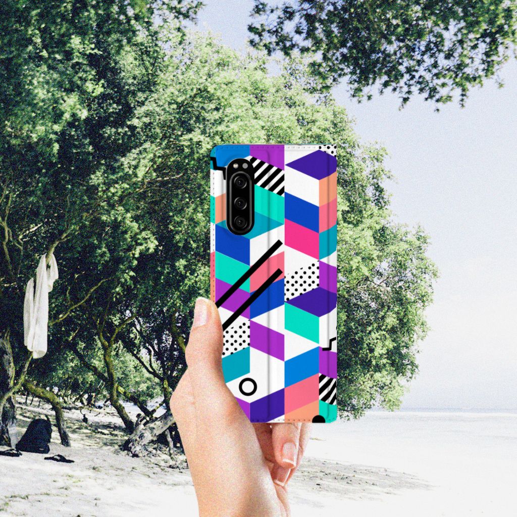 Stand Case Sony Xperia 5 Design Blokken Kleurrijk