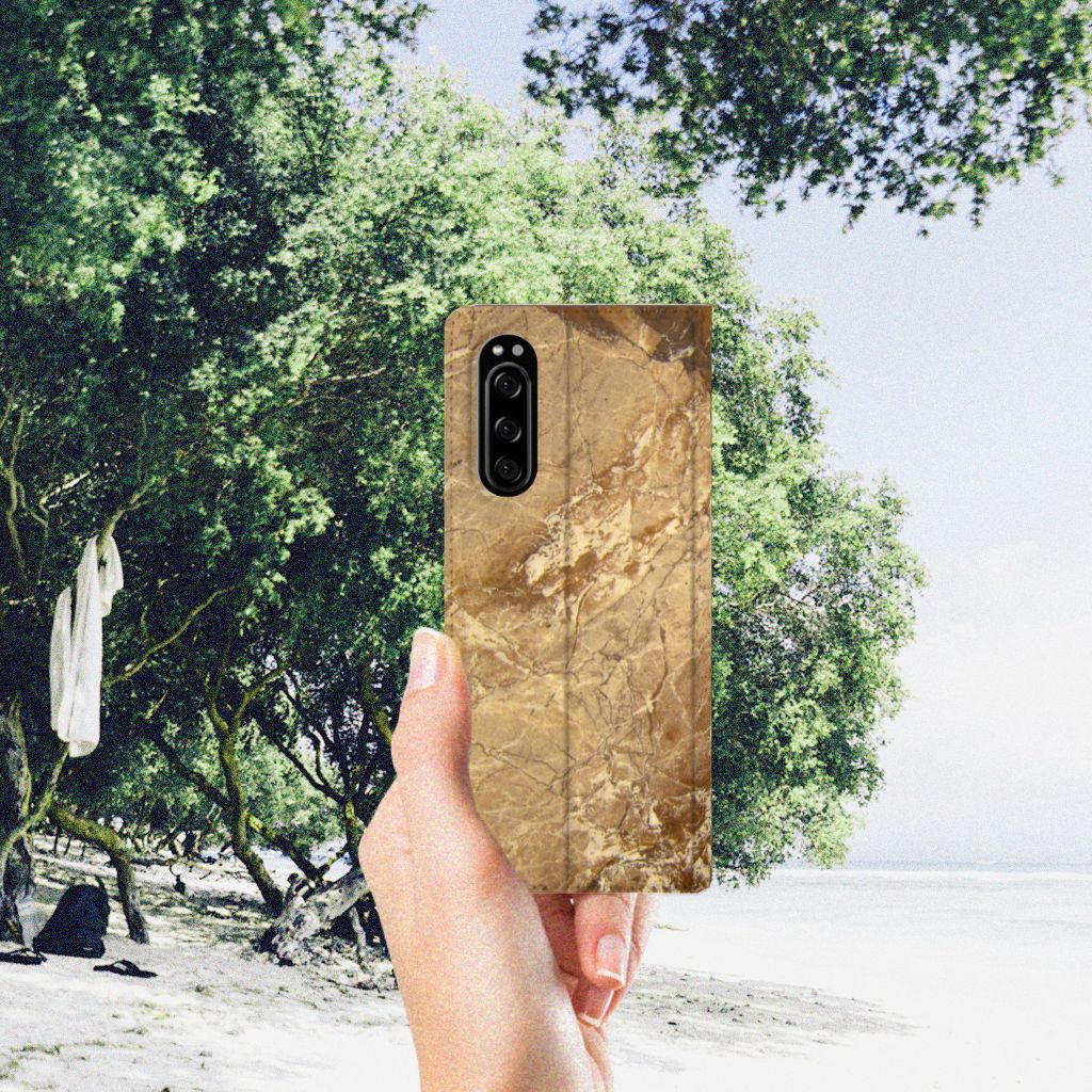 Dit design hoesje met Marmer in lichtbruine kleur is voor de artistiekelingen onder ons. De Grieken en Romeinen wisten het marmer al te waarderen door het in de bouw toe te passen. Naast het witte marmer zijn de diverse soorten marmer in een gevarieerde kleurensamenstelling te krijgen. We hebben verschillende mooie kleuren op design hoesjes gezet, zoals in dit geval het lichtbruine marmer. Dit is een Sony Xperia 5 Standcase met marmer in lichtbruine kleur. Het marmer wordt bedrukt op alle zijden van een stand case, die beschikt over 1 vakje voor een pasje en een magnetische sluiting aan de binnenzijde. Verder heeft de hoes een houder van TPU. Door de rijkdom aan kleuren en varianties in afwerking kunnen ontwerpers met marmer schitterende architectonische projecten realiseren. Wij hebben hetzelfde gedaan en onze ontwerper veel vrijheid geboden. Het resultaat zie je terug in deze stand case met lichtbruin marmer, dat de ideale bescherming voor jouw smartphone is.