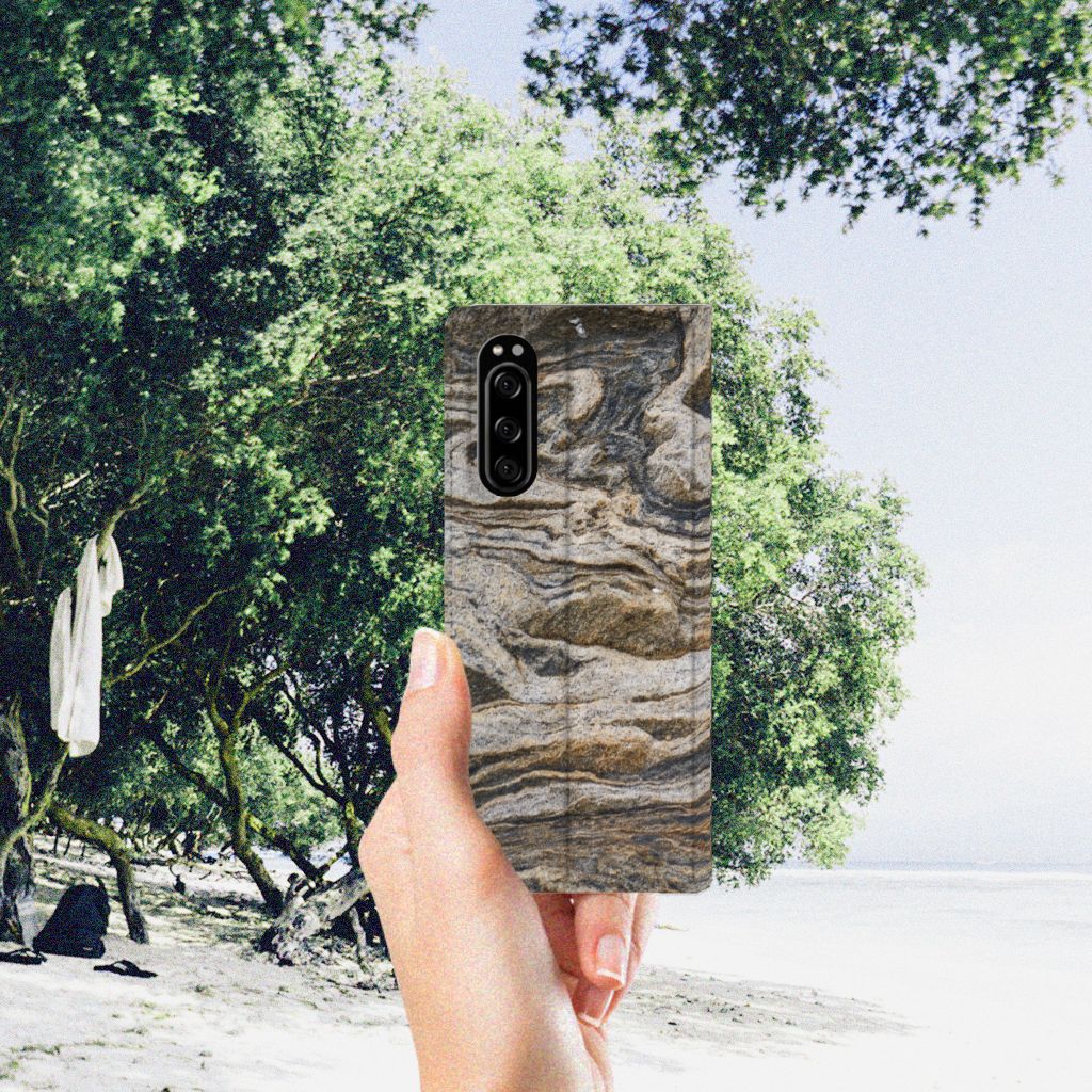 Deze Sony Xperia 5 Standcase is jouw rots in de branding. Het bruine rotsachtige steen maakt van jouw stand hoesje een echte eyecatcher. Een stand case is van zichzelf al zeer fraai om dit zien, maar met dit design wordt de smartphone pas echt een begerenswaardig apparaat. Het bruine rotsachtige steen wordt bedrukt op alle zijden van de stand case, die beschikt over een vakjes voor pasjes en toebehoren en een magnetische sluiting aan de binnenkant. Verder heeft de case een houder van TPU. Met steen kun je alle kanten op, dat bewijzen we met deze collectie design hoesjes. Onze designer heeft zich overtroffen met dit boekhoesje met structuur van steen.