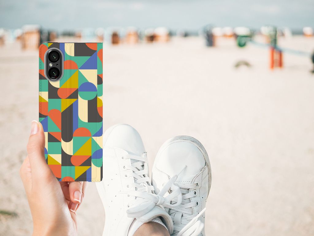 Voor de mensen die een beetje artistiek zijn, is er dit design hoesje met kleuren in een soort van Funky Retro stijl. Je krijgt er bijna een beetje een nostalgisch gevoel bij. De opdruk op dit design hoesje gaat nooit verloren en gaat dus net zo lang mee als dit gave patroon. De print wordt in ons eigen magazijn bedrukt, met zeer duurzame inkt. De case heeft voldoende uitsparingen, dus als je jouw Sony Xperia 5 V hebt beloond met dit hoesje ga je een beetje terug in de tijd. Je hoeft het de telefoon nooit uit dit artistieke design hoesje te halen. Het unieke design, door B2C Telecom ontworpen, staat op een Hoesje met Magneet. Deze case beschermt jouw telefoon aan alle kanten en beschikt over een 1 opbergvakje en een speciale standaard. Het hoesje wordt afgesloten met een magneet aan de binnenzijde. De houder aan de binnenzijde is van TPU.