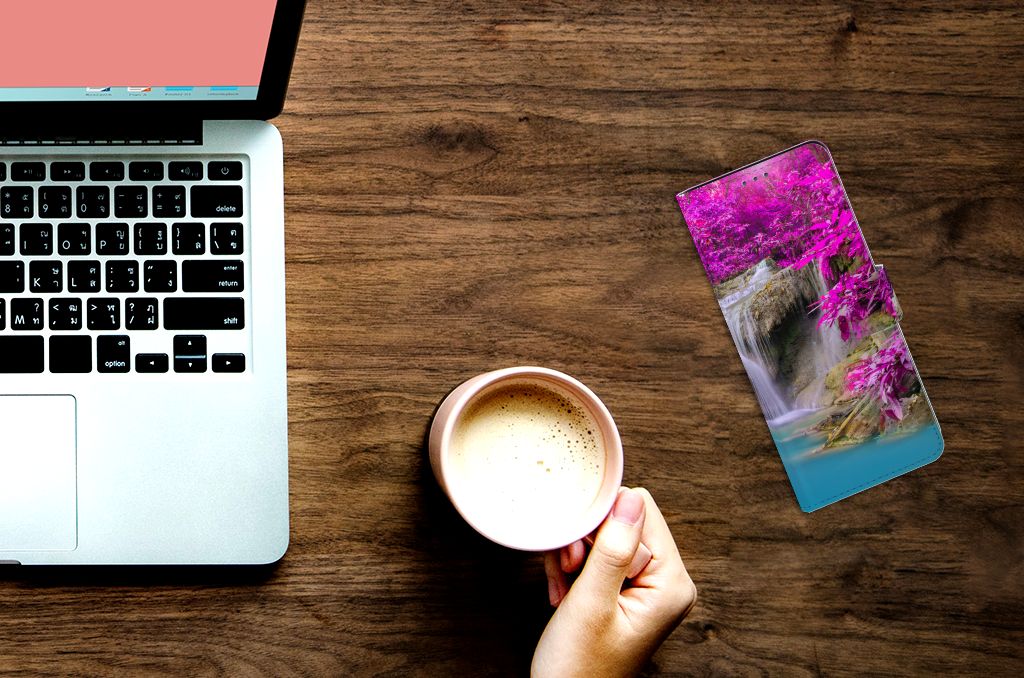 Op deze Sony Xperia 5II Flip Cover zie je een kalme waterval en de achtergrond is gevuld met paarse bomen. Samen creëert dit een prachtig en kleurrijk spektakel, iets wat je graag op je Sony Xperia 5II hoesje ziet. Wanneer je hiernaar kijkt, word je direct kalm. Als jij je even boos of verdrietig voelt, hoef je alleen maar naar jouw boekhoesje te kijken om weer blij te worden. Ook jouw telefoon zal blij zijn met deze Flip Cover aangezien deze goede bescherming biedt. Als jij je telefoon per ongeluk laat vallen, is er niets aan de hand. Het hoesje zorgt ervoor dat de telefoon intact blijft. Zelfs als hij op het beeldscherm zou vallen, is er dankzij de magnetische sluiting, niets aan de hand.