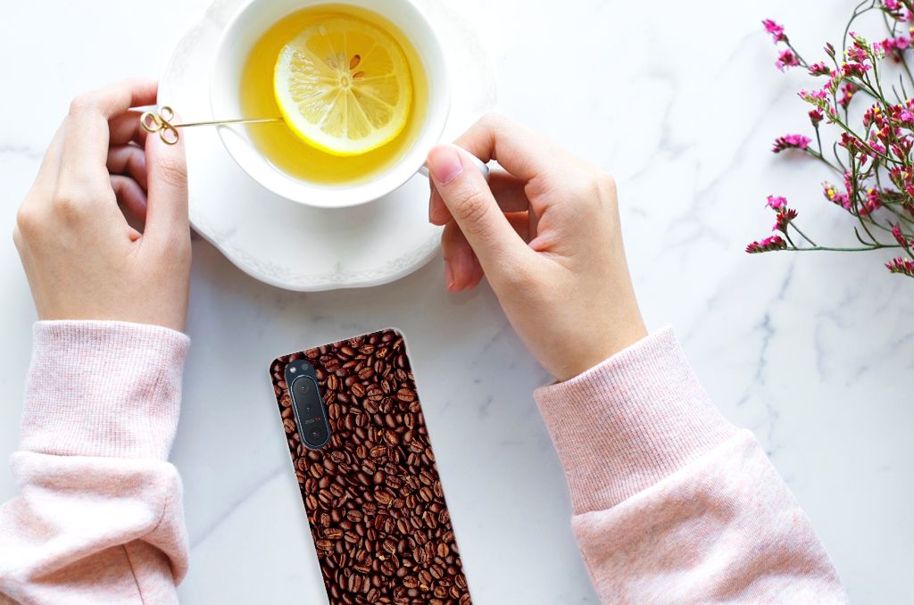 Als je de lekkerste koffie wilt dan kun je beste koffiebonen kopen. Koffie is namelijk het verst wanneer je de bonen zelf maalt. En wie houdt nou niet van de geur van vers gemaalde koffie? Daarom hebben wij de mooiste Koffiebonen op een smartphone hoesje gezet. Ben je barista, dan is dit het perfecte hoesje voor jouw werktelefoon. De koffiebonen staan op een tpu case. Dit is een zeer flexibel hoesje, dat altijd en overal in je broekzak past. Alleen de bovenkant van dit hoesje wordt door ons bedrukt, op zeer duurzame manier. Mensen die houden van een stevige espresso, kiezen voor dit degelijke design hoesje met bonen. Er staan geen bonen op de zijkanten van een Sony Xperia 5II Siliconen Case. Wel kun je zelf een eigen tekst toevoegen aan het design. Hoe mooi is dat?
