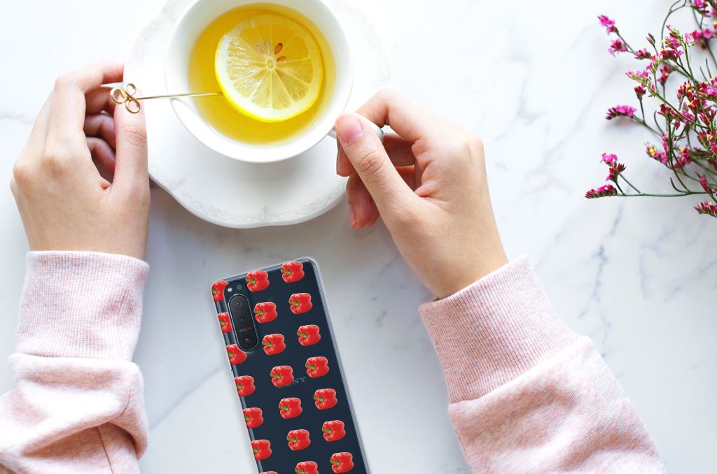 Er zit pit in jouw Sony Xperia 5II Siliconen Case dankzij dit design met rode paprika’s. Paprika’s zijn er in allerlei kleuren en vormen en ze hebben gemeen dat ze heel erg gezond zijn. De rode paprika’s op deze case staan op een grijs met witte geblokte achtergrond en vormen een opvallende verschijning. Heb jij ooit iemand in je nabije omgeving rond zien lopen met een design hoesje met rode paprika’s? Waarschijnlijk niet. Dit hoesje wordt alleen aan de bovenkant bedrukt met paprika’s en is zeer flexibel. De randen van het hoesje blijven transparant en worden niet bedrukt. Met dit hoesje past jouw telefoon altijd in je broekzak. Zeker weten dat je met dit hoesje met rode paprika’s een smartphone accessoire te pakken hebt waarmee je jezelf in de schijnwerpers zet. Als je andere kleuren paprika’s op je hoesje wilt, raden we je aan ons assortiment design hoesjes te bekijken of zelf een hoesje te ontwerpen.