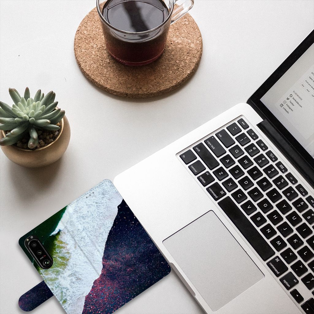 Sony Xperia 5III Book Case gemaakt van TPU-siliconen en kunstleer Sea in Space