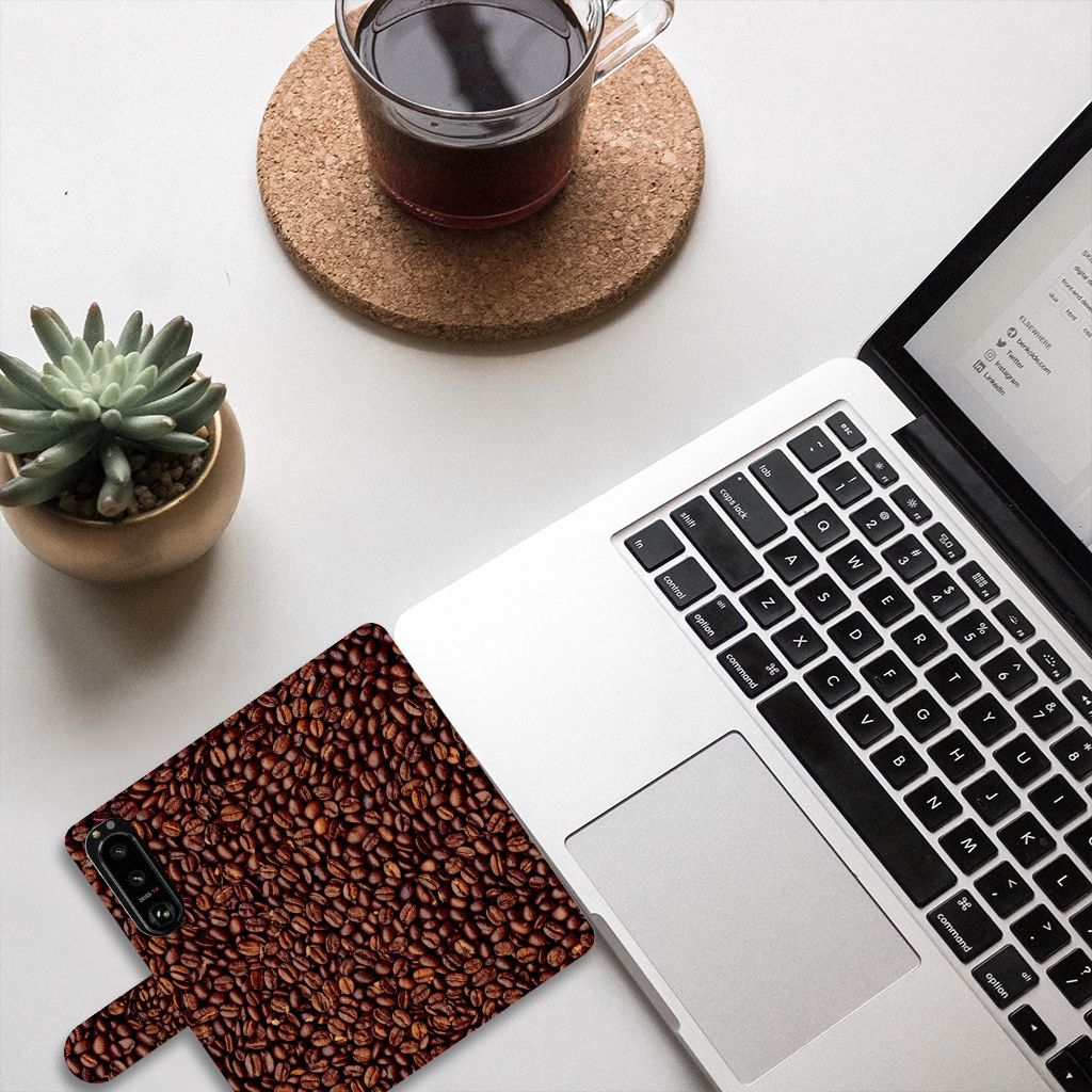 Als je de lekkerste koffie wilt dan kun je het beste koffiebonen kopen. Koffie is namelijk het verst wanneer je de bonen zelf maalt. En wie houdt nou niet van de geur van vers gemaalde koffie? Daarom hebben wij de mooiste Koffiebonen op een smartphone hoesje gezet. Ben je barista, dan is dit het perfecte hoesje voor jouw werktelefoon. De koffiebonen staan op een boekhoesje. Er is vrijwel geen betere bescherming dan dit hoesje, dat ook nog eens opbergvakjes heeft en zeer praktisch is. Je kunt je beurs thuislaten met een Sony Xperia 5III Book Cover. Alle zijden van dit hoesje zijn bedrukt, evenals het lipje aan de buitenzijde. Mensen die houden van een stevige espresso, kiezen voor dit degelijke design hoesje met bonen. Er staan ook bonen op het lipje en je kunt zelf een eigen tekst toevoegen.