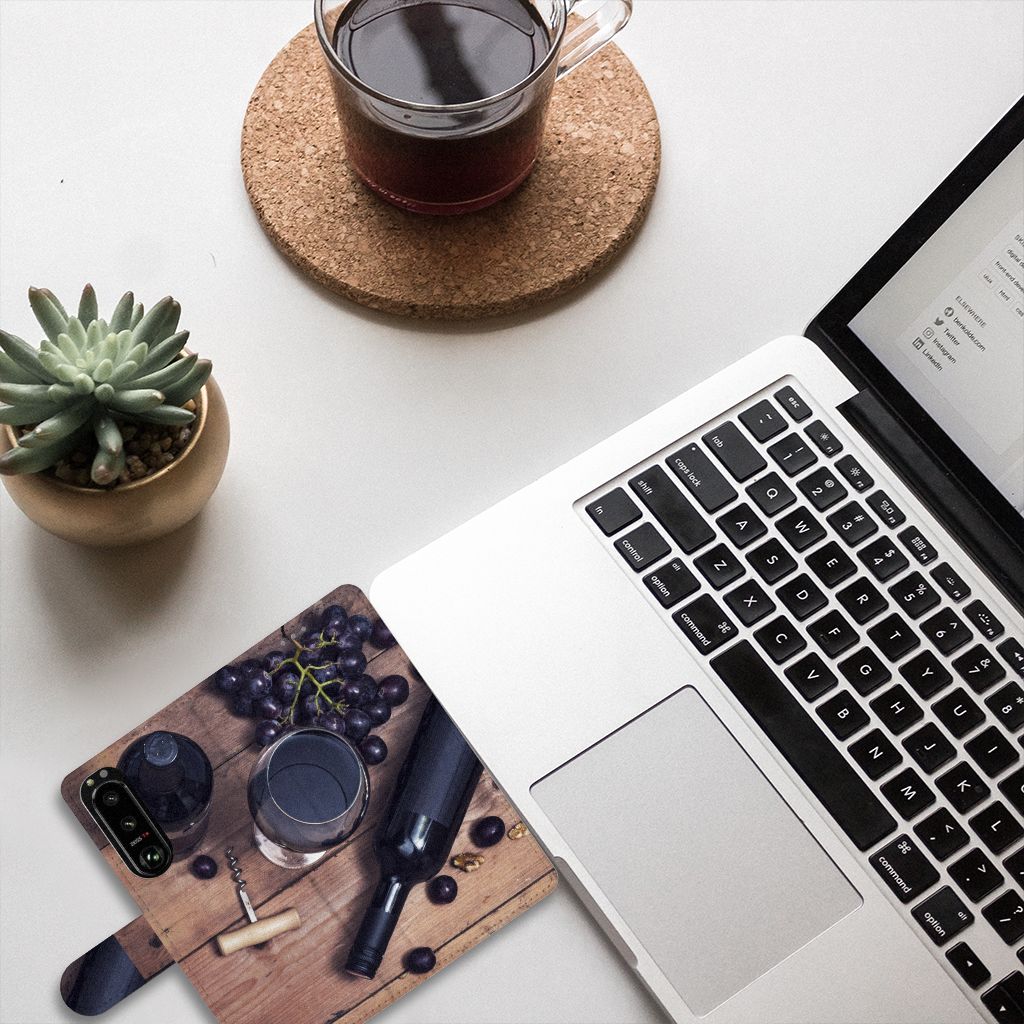 Voor de mooiste wijnen zou je tijdens je vakantie in Frankrijk, Italië, Spanje of Duitsland eens een paar producenten kunnen bezoeken. Voor de mooiste hoesjes met wijnen klop je aan bij B2C Telecom. Zoals dit mooie Sony Xperia 5III Book Cover. Het telefoonhoesje met Wijn design heeft verschillende vakjes, waarin je pasjes en briefgeld kunt stoppen. Jouw telefoon past precies in de houder van TPU. Ben je een uitgesproken liefhebber van rode wijn, bijvoorbeeld omdat die goed combineert bij een lekker kaasje? Dan raden we je aan dit handige boekhoesje met rode wijn te bestellen. Een deel van het wijn design komt ook op het lipje te staan, dat jouw boekhoesje aan de buitenkant perfect afsluit. Jouw telefoon is dus aan alle kanten beschermd met rode wijn, kurketrekker en rode druiven.