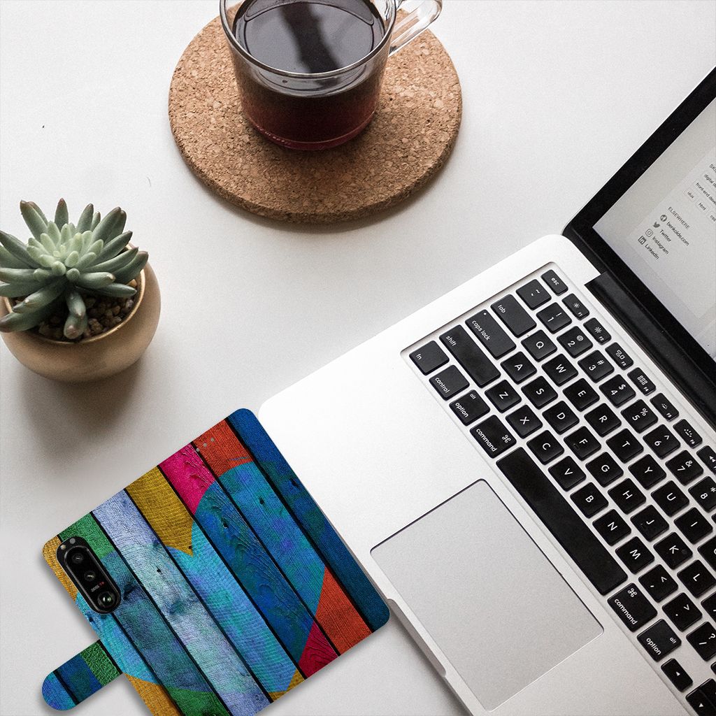 Sony Xperia 5III Bookstyle Case met pasjes Wood Heart