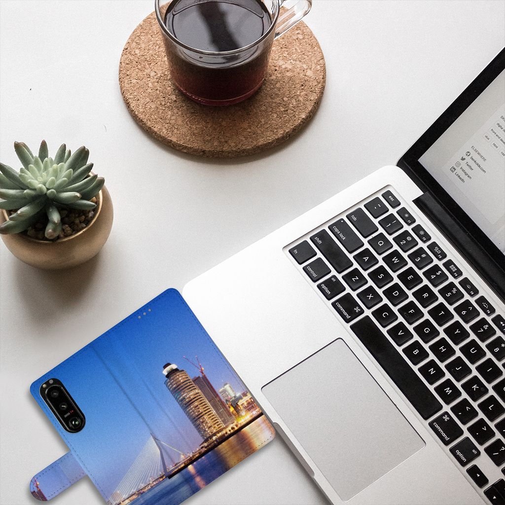 Een hoesje met de Rotterdamse skyline is niet alleen voor de plaatselijke inwoners een bijzonderheid. Ook jij zult glimmen van trots wanneer het gaat over jouw boekhoesje met de Rotterdamse skyline. Sinds 1975 zijn hoogbouw en Rotterdam onlosmakelijk met elkaar verbonden. Dat zie je duidelijk terug als je dit smartphone hoesje koopt. Een Sony Xperia 5III Flip Cover is zeer praktisch dankzij de opbergvakjes aan de binnenzijde en het magnetische lipje aan de buitenzijde en beschermt jouw smartphone aan alle zijden. Dankzij het platte Hollandsche landschap zie je de Rotterdamse binnenstad vanuit verschillende posities liggen. Beloon jezelf en je telefoon met dit mooi Rotterdamse boekhoesje. De case heeft een houder van TPU, waar jouw telefoon precies in past.