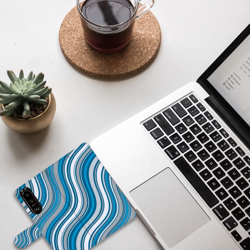 Zeer cool, dit hoesje met vooral blauwe kleuren, die in een golvende beweging jouw telefoon van een mooie uitstraling voorzien. Tijdens een zonnige vakantie aan zee is jouw smartphone perfect beschermd met dit telefoonhoesje. Het design Waves Blue van dit smartphone hoesje doet lichtjes denken aan een lolly, waarmee je een klein kind zeer blij maakt. Jouw Sony Xperia 5III zal er ook zeer vrolijk uitzien samen met dit design hoesje. De witte en grijze kleuren staan in mooi contrast met het blauw, waardoor de uitstraling van deze accessoire zeer mooi is. Ook voor andere kleuren kun je natuurlijk uitstekend terecht in ons assortiment. Het design staat op een boekhoesje. Dit Telefoon Hoesje beschermt jouw telefoon aan alle zijden en beschikt over verschillende opbergvakjes voor pasjes en briefgeld. De case sluit perfect af met het lipje aan de buitenkant. De houder aan de binnenzijde is van TPU.