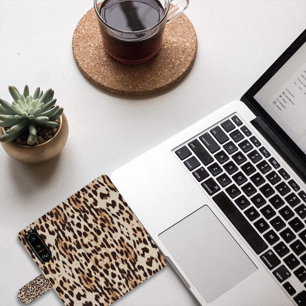 Sony Xperia 5III Telefoonhoesje met Pasjes en met magnetische sluitclip Leopard