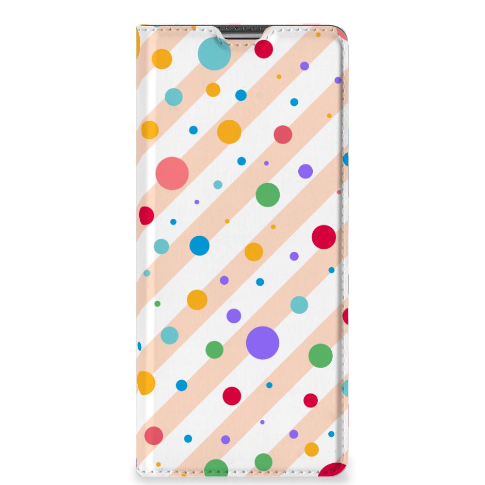 Een Sony Xperia L4 Hoesje met Magneet met verschillende kleuren stippen is een schitterende bescherming van jouw smartphone. De stand case met het design Dots in alle kleuren van de regenboog komt voor jou als geroepen. Maak je geen gebruik van dit zeer mooie hoesje, dan kan het met jouw smartphone een beetje beroerd aflopen. Dit mooie stand hoesje met verschillende kleuren stippen zorgt voor een volledige bescherming van je smartphone en wordt aan alle zijden bedrukt. Dankzij de speciale standaard kun je rustig achteroverleunend filmpjes bekijken terwijl je je handen vrij hebt. Verder is de houder aan de binnenzijde van TPU. Jouw telefoon is dus zeer goed opgeborgen en kan geen kant op. Met een hoesje met stippen in verschillende kleuren op alle zijden blijft jouw telefoon volledig in tact. Heb je liever een stand case met stippen in andere opvallende kleuren? Ontwerp dan zelf case met je eigen foto’s en teksten!