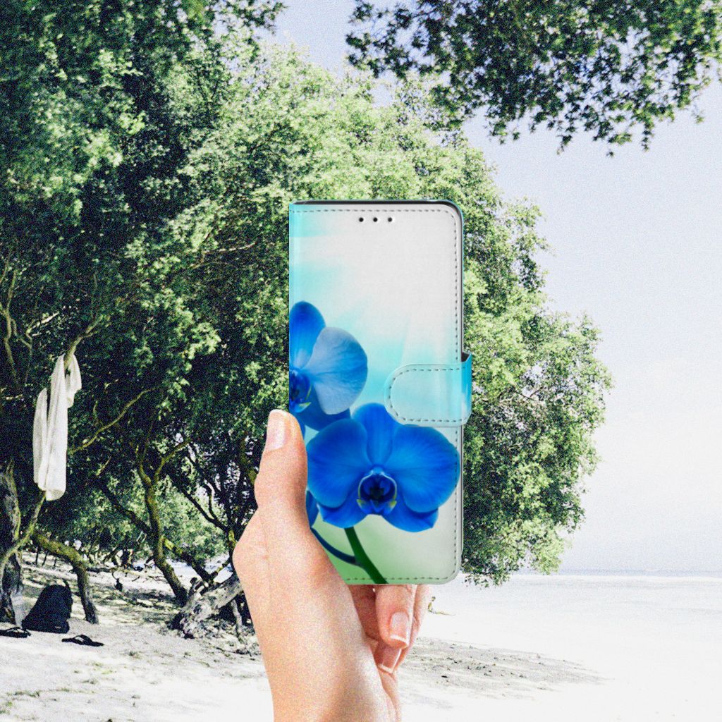 Sony Xperia L4 Hoesje met magnetische sluitclip Orchidee Blauw