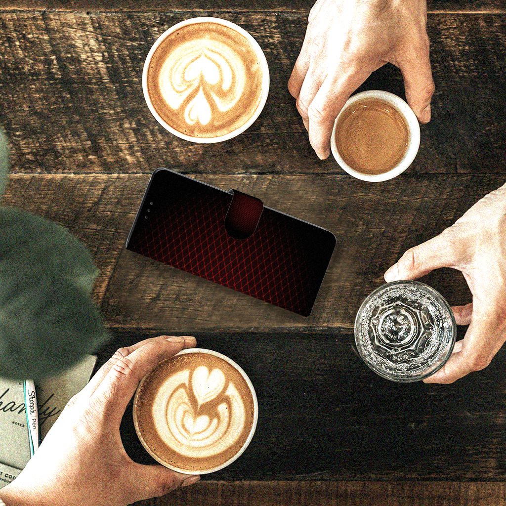 Het design van dit Telefoon Hoesje is erg minimalistisch, strak en toch weer opvallend en krachtig. Het rood op het zwart geeft een mooi contrast en is niet overheersend. Voor een lage prijs kan jij dit design telefoonhoesje in bezit krijgen. Bovendien is het hoesje aan alle zijdes bedrukt, inclusief het sluitlipje. Ook is het mogelijk om dit hoesje verder te personaliseren. Zo kun je jouw naam of een quote toevoegen en is het mogelijk om eigen foto’s toe te voegen om dit telefoon hoesje nog kunstzinniger te maken. Je kunt deze bookcase als een soort van canvas zien, waar je zelf iets artistieks van kunt maken.