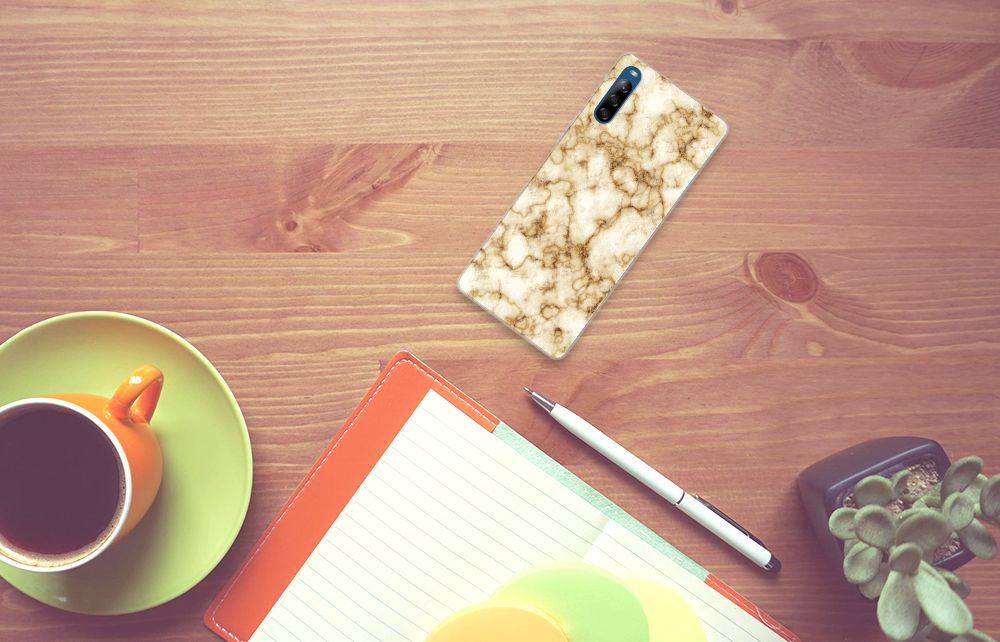 Deze Sony Xperia L4 TPU Siliconen Hoesje met Marmer Goud is het waard om een blokje voor om te rijden. Dit is overigens niet nodig. Als je het hoesje met goud marmer nu bestelt heb je het zeer snel in huis. Je kunt er bij wijze van spreken thuis op gaan zitten wachten. Je hebt diverse soorten marmer. We hebben enkele fraaie kleuren op onze hoesjes gezet, zoals in dit geval het gouden marmer. Het goud marmer wordt bedrukt op de achterkant van de tpu case, die beschikt over alle nodige uitsparingen waardoor je alle knoppen en poorten van je smartphone kunt bedienen. Verder is de case met goud marmer gemaakt van zeer flexibel materiaal. De rijkheid aan kleuren en varianties in afwerking is een schitterende eigenschap van marmer. Dit tpu hoesje met goud marmer heeft ook veel schitterende eigenschappen en is de ideale bescherming voor jouw smartphone.