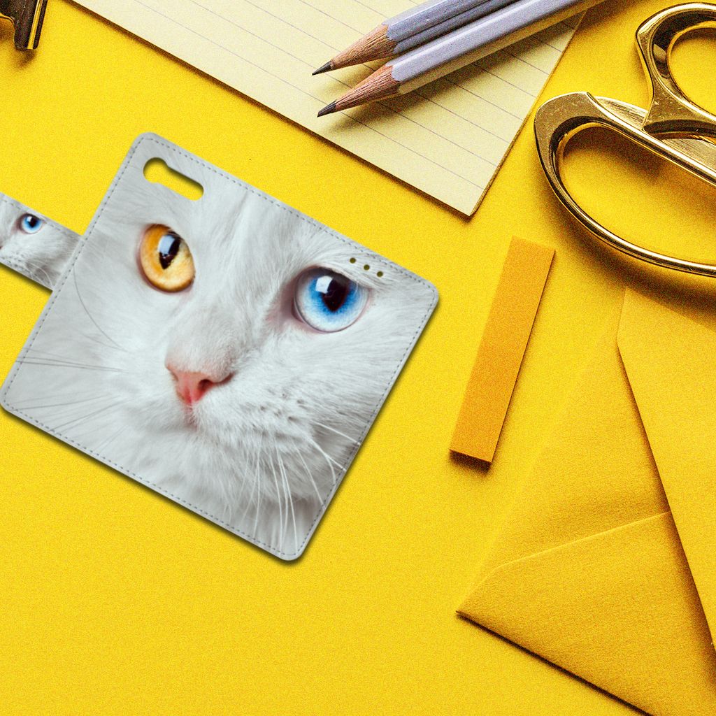 Sony Xperia X Compact Telefoonhoesje met magnetisch lipje als sluiting Witte Kat