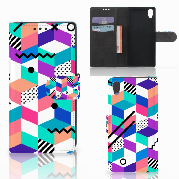 Sony Xperia XA1 Book Case Design Blokken Kleurrijk