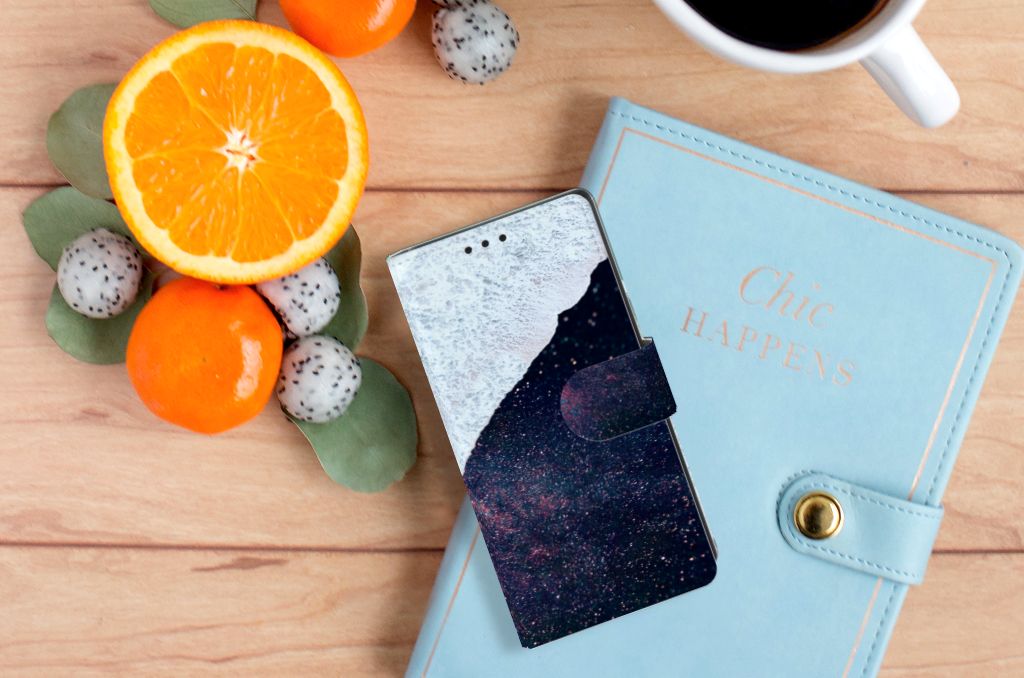 Sony Xperia XA1 Book Case gemaakt van TPU-siliconen en kunstleer Sea in Space