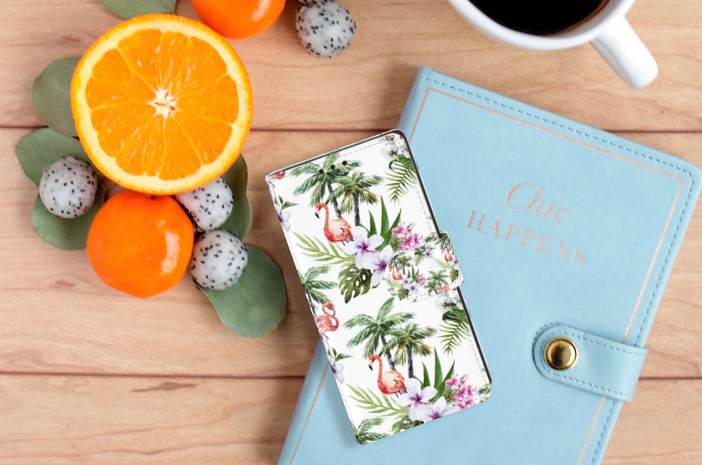 Sony Xperia XA1 Telefoonhoesje met ruimte voor 3 pasjes Flamingo Palms