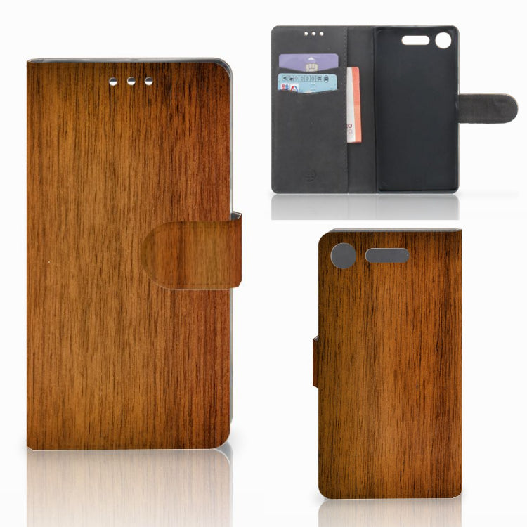 Sony Xperia XZ1 Book Style Case met pasjeshouder Donker Hout