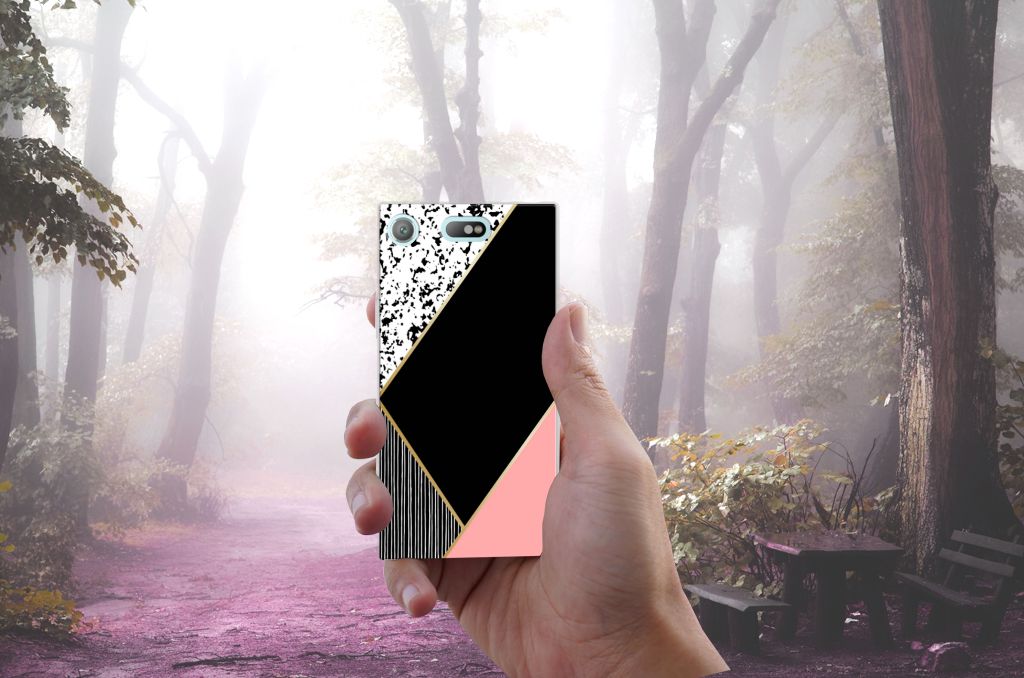 TPU Hoesje Sony Xperia XZ1 Compact Zwart Roze Vormen Design
