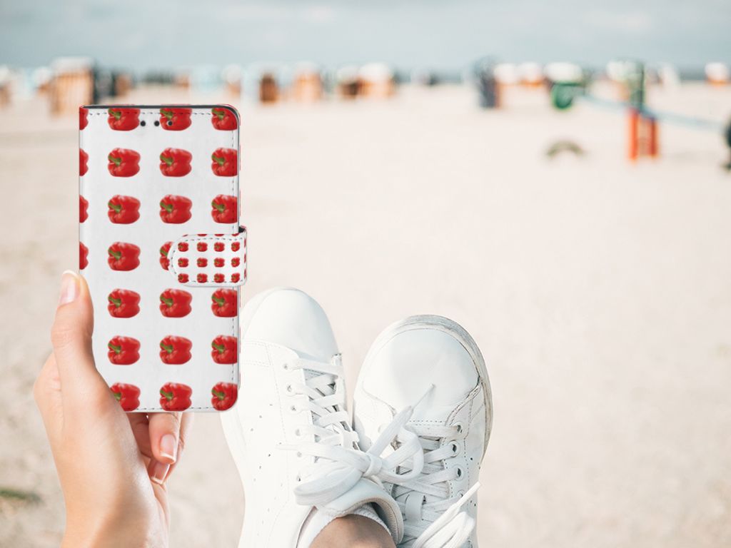 Er zit pit in jouw Sony Xperia Z3 Book Cover dankzij dit design met rode paprika’s. Paprika’s zijn er in allerlei kleuren en vormen en ze hebben gemeen dat ze heel erg gezond zijn. De rode paprika’s op deze case staan op een grijs met witte geblokte achtergrond en vormen een opvallende verschijning. Heb jij ooit iemand in je nabije omgeving rond zien lopen met een design hoesje met rode paprika’s? Waarschijnlijk niet. Dit boekhoesje met rode paprika’s beschermt jouw telefoon aan alle zijden en beschikt over verschillende opbergvakjes voor pasjes en briefgeld. De case sluit perfect af met het magnetische lipje aan de buitenkant. Zeker weten dat je met dit hoesje met rode paprika’s een smartphone accessoire te pakken hebt waarmee je jezelf in de schijnwerpers zet. De houder aan de binnenzijde van het boekhoesje met rode paprika’s is van TPU. Als je andere kleuren paprika’s op je hoesje wilt, raden we je aan ons assortiment design hoesjes te bekijken of zelf een hoesje te ontwerpen.