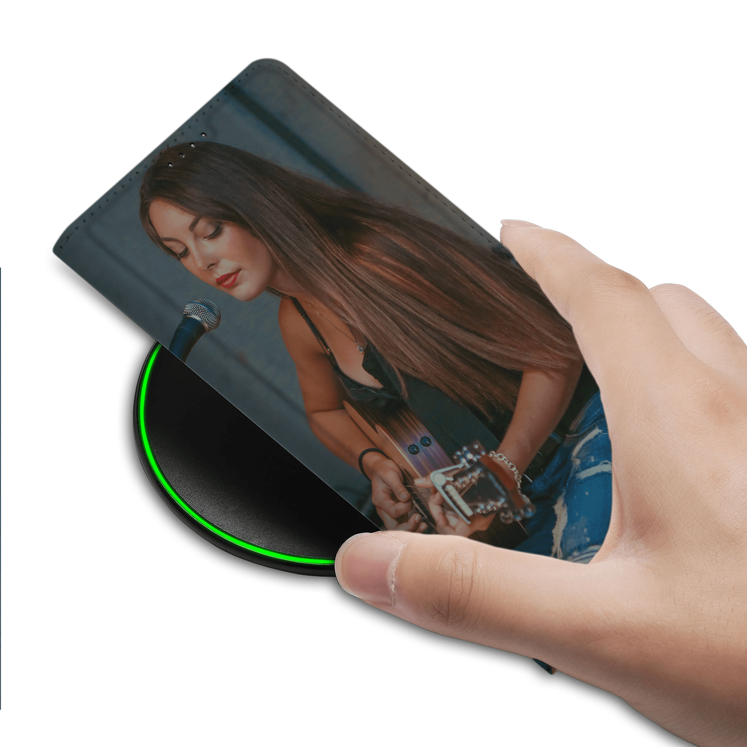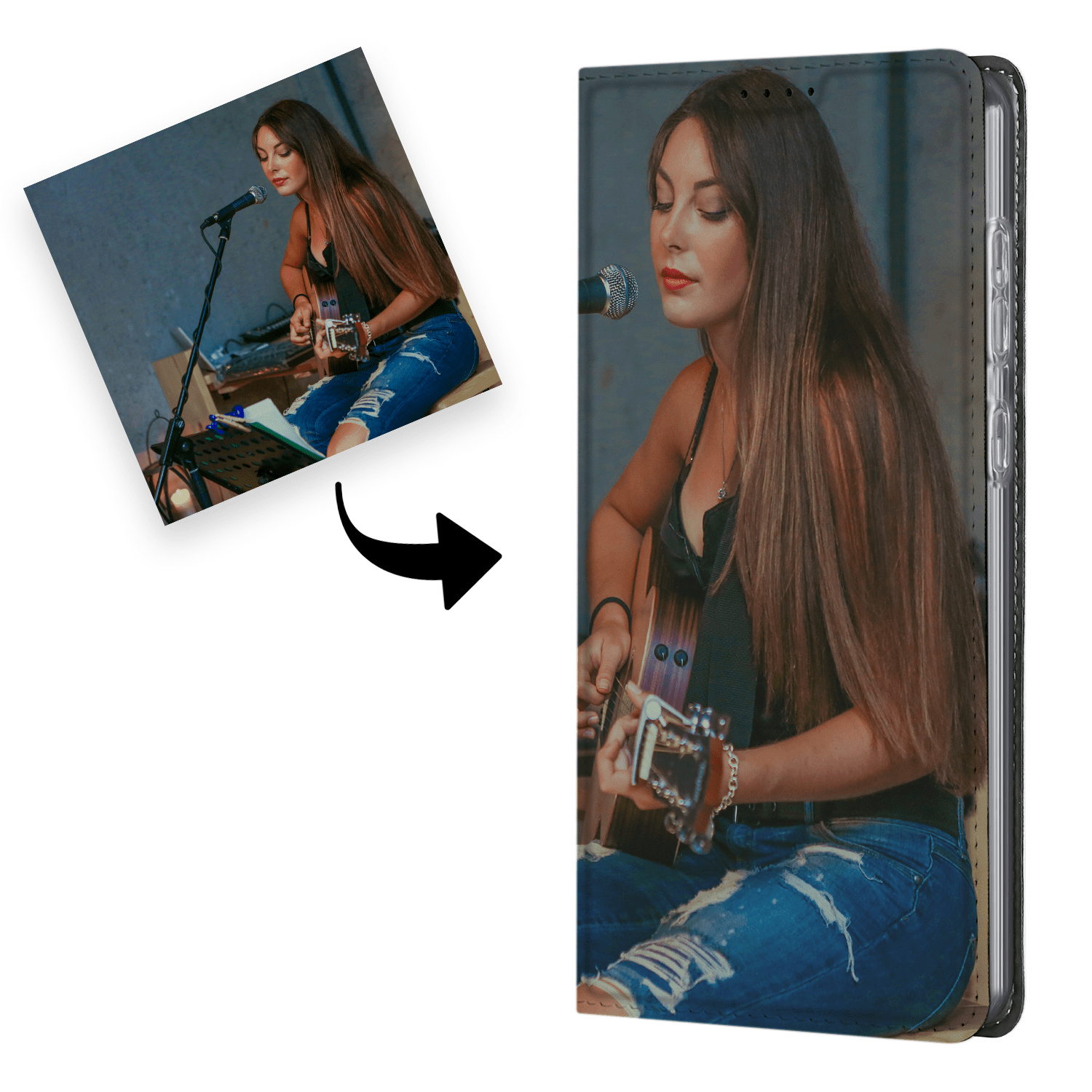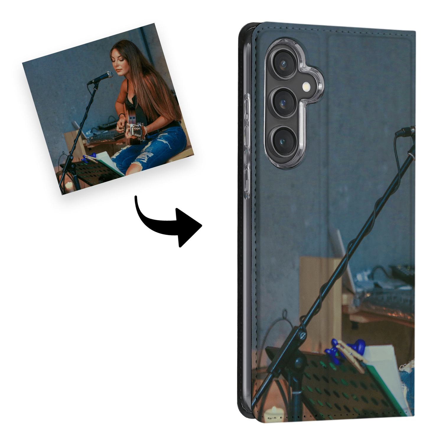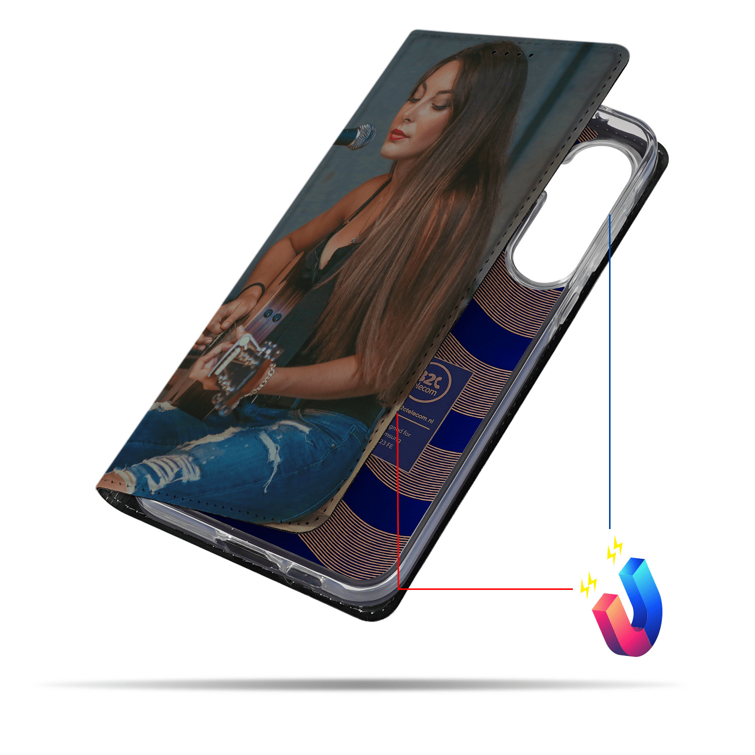 Stand Case Hoesje Maken voor de Samsung Galaxy S23 FE. Ben je op zoek naar een originele en unieke bescherming voor je telefoon? Dan ben je bij B2C Telecom aan het juiste adres! Je kunt via onze website gemakkelijk een telefoonhoesje ontwerpen met foto's, tekst of bedrijfslogo. De mogelijkheden zijn eindeloos. Wees creatief en upload foto's of plaatjes van je kinderen, huisdieren, familie, hobby of favoriete voetbalclub. De foto's of plaatjes kun je in de gewenste grootte plaatsen of draaien voor een speels effect. Maak het hoesje persoonlijker door je naam of quote toe te voegen. Je kunt kiezen uit verschillende lettertypes; van strak tot vetgedrukt of ga je liever voor iets sierlijks? Het kan allemaal! De kers op de taart is natuurlijk de toevoeging van een glossy-effect! Kies uit verschillende effecten en jouw hoesje wordt subtiel bedrukt met een glossy-effect. Kortom, wij bieden verschillende mogelijkheden om jouw hoesje zo persoonlijk en uniek mogelijk te maken! Jouw ontwerp wordt bedrukt op een wit hoesje gemaakt van kunstleer. De binnenkant van het hoesje is donkergrijs en heeft één vakje voor een pasje. De houder waar je je telefoon in vast zet, is gemaakt van transparante TPU. Door de magneten aan de binnenkant, blijft het hoesje stevig dicht. Een ander voordeel is dat het hoesje een stand-case functie heeft voor als je graag filmpjes kijkt op je telefoon. Overtuigd? Ontwerp dan vandaag nog je eigen telefoonhoesje en ontvang jouw ontwerp binnen een aantal werkdagen in huis!